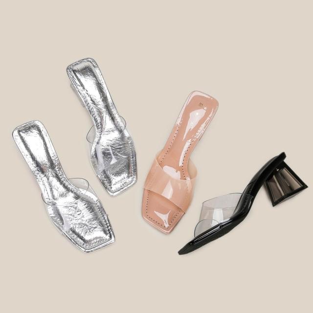 比比購 H368-6糖果色ZA透明高跟拖鞋女銀色夏季涼鞋透明水晶跟外穿鞋子女