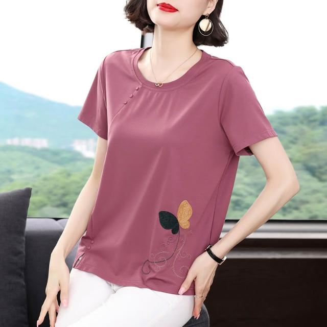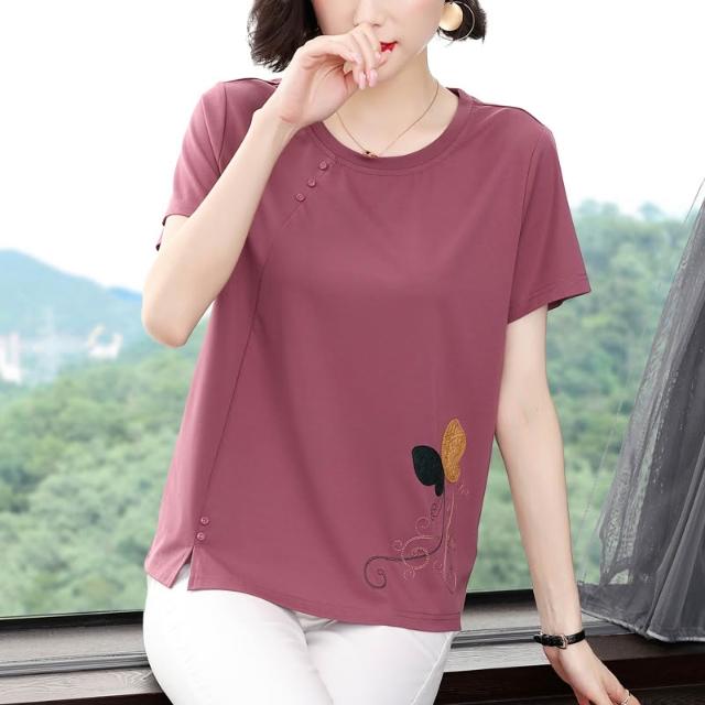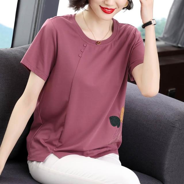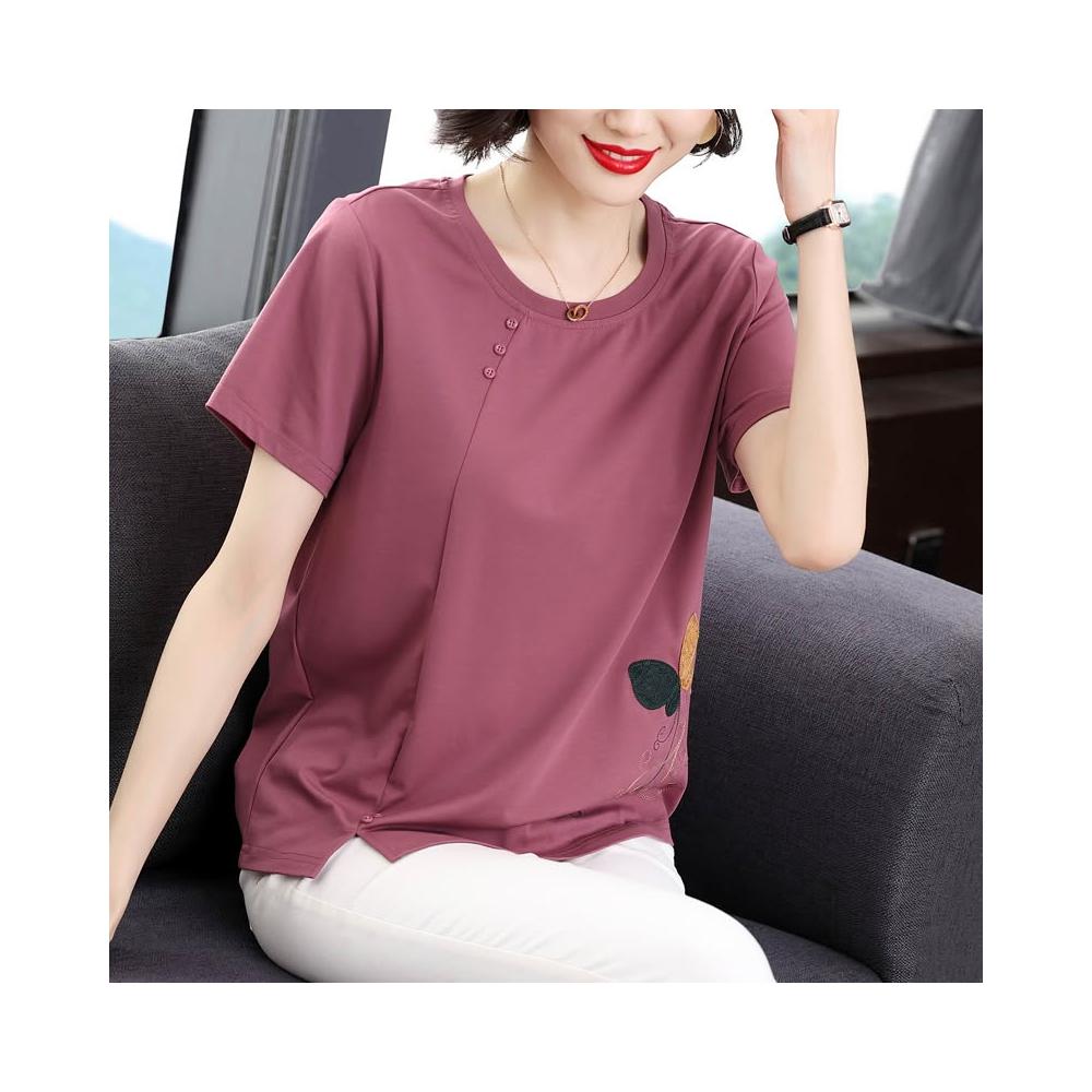 新款夏季短袖 中老年女裝夏裝短袖t恤2023年新款洋氣顯瘦遮肚大碼圓領t恤 比比購