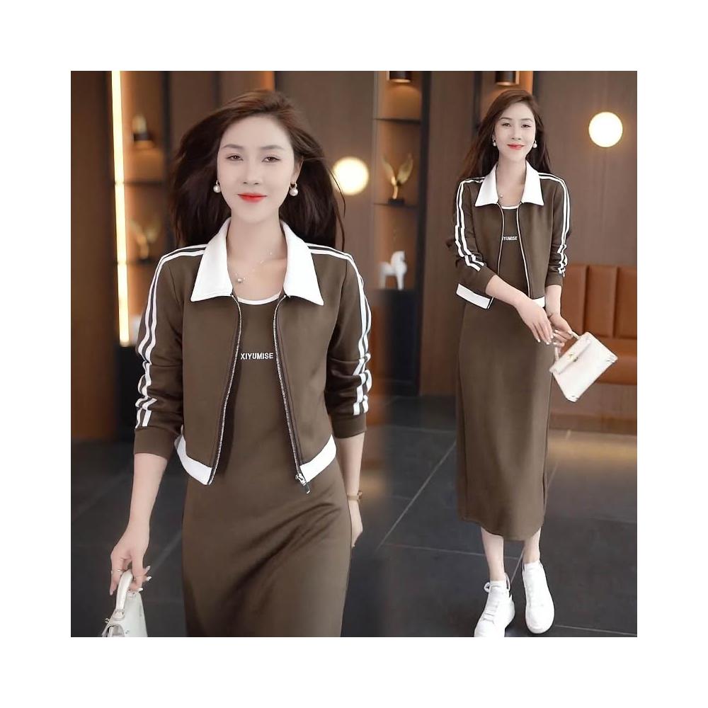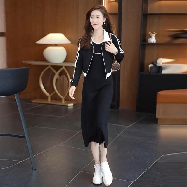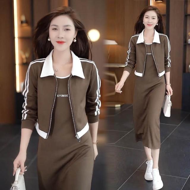 新款夏季連衣裙 官圖 休閑時尚中長款連衣裙套裝女士2026春秋新款洋氣長裙兩件套 比比購