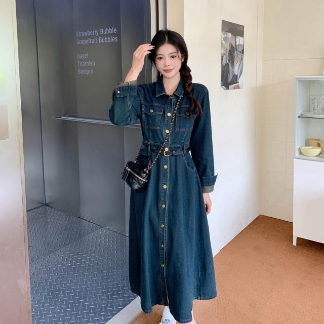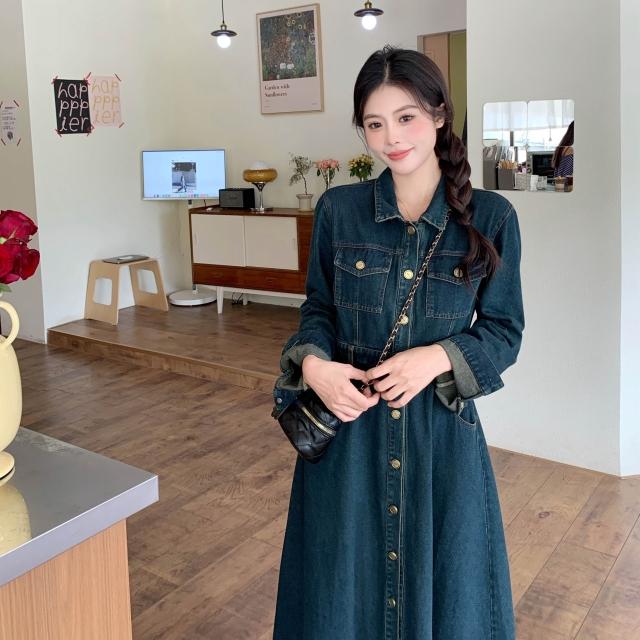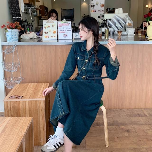 新款夏季連衣裙 大碼女裝顯瘦遮肉長袖連衣裙2026春季新款胖mm時尚休閑牛仔裙子 比比購