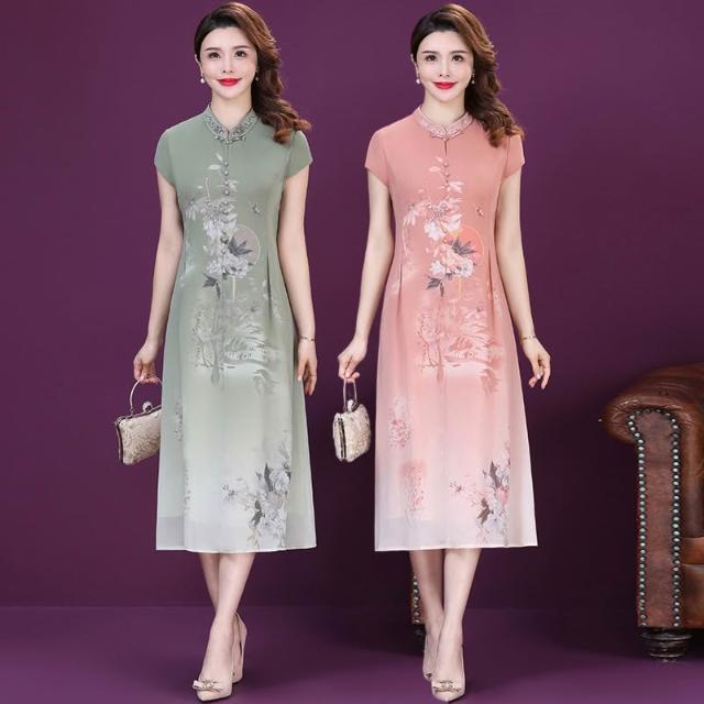 新款夏季連衣裙 重磅仿真絲香雲紗連衣裙女2022新款媽媽夏裝印花仿桑蠶絲裙子 比比購