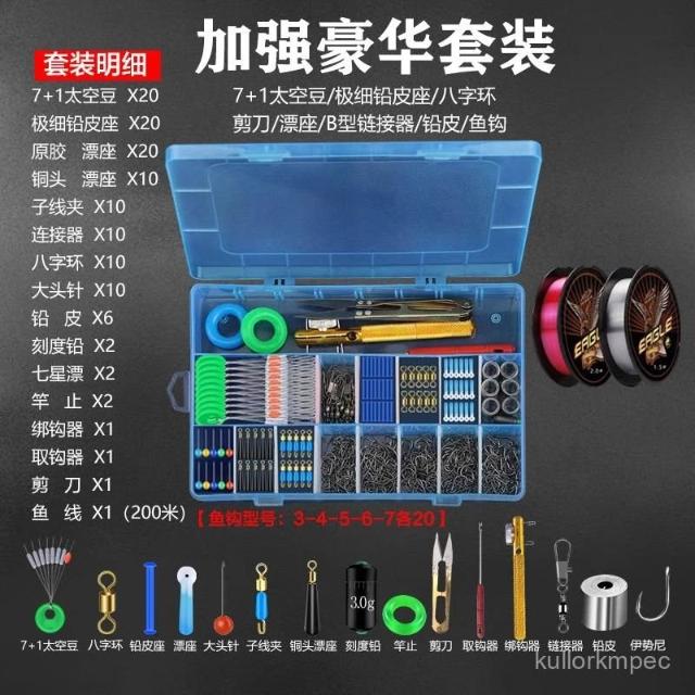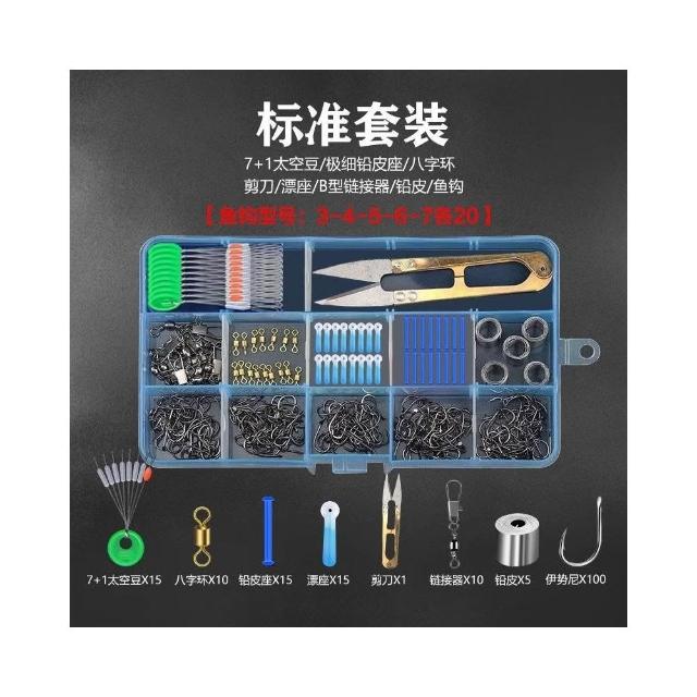 精選聯盟 魚鈎套裝全套7+1太空豆漂座鉛皮座8八字環配件組閤散裝漁具連接器