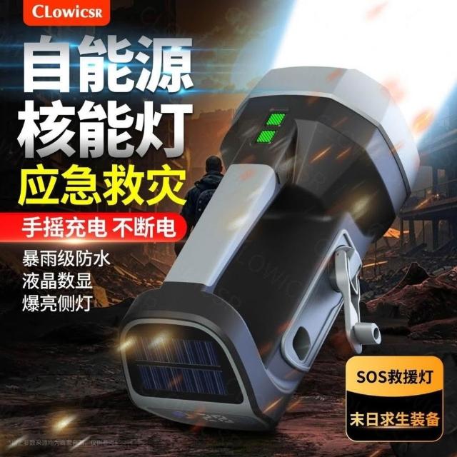 精選聯盟 手搖髮電太陽能充電超亮手電筒戶外夜釣露營超長續航應急防災00
