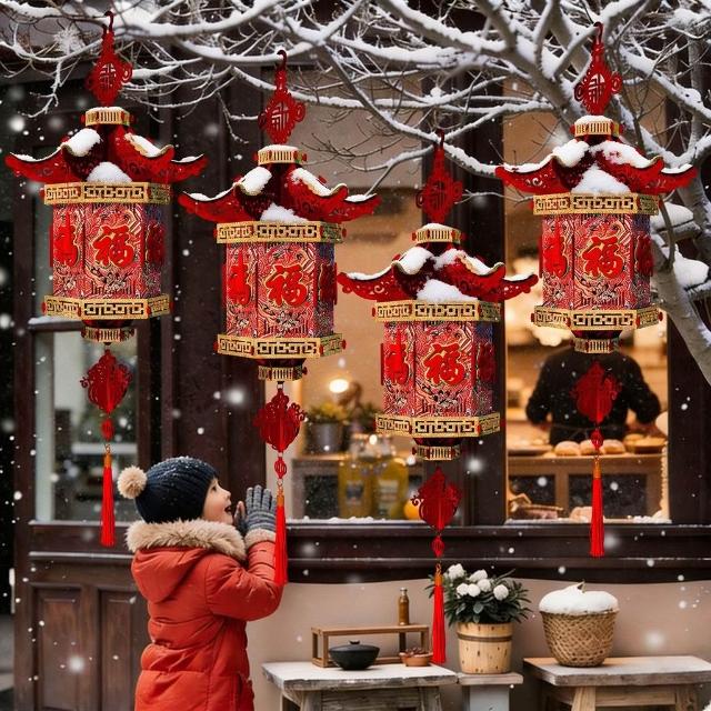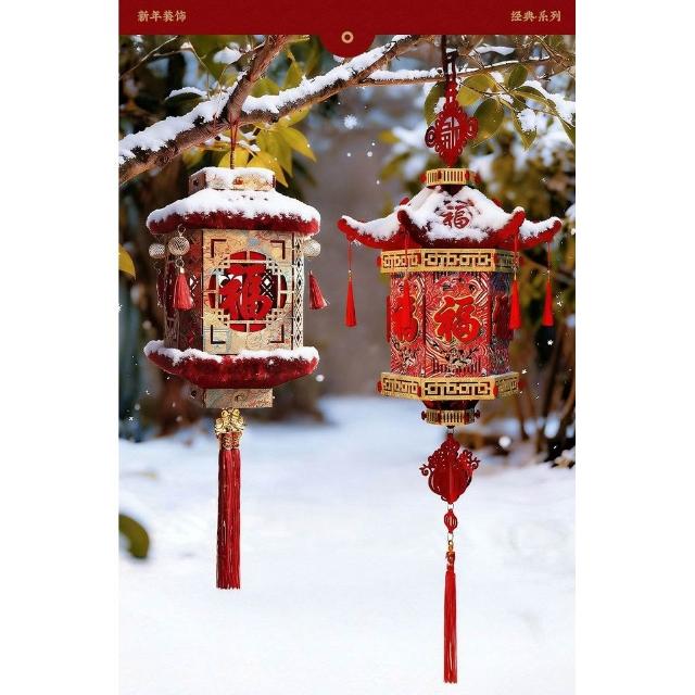 精選聯盟2026新款新年福字大門口燈籠客廳毛絨掛飾農村佈置過年氛圍裝飾品