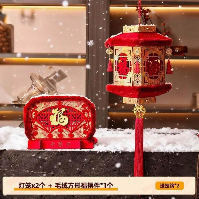 精選聯盟2026新款新年福字大門口燈籠客廳毛絨掛飾農村佈置過年氛圍裝飾品