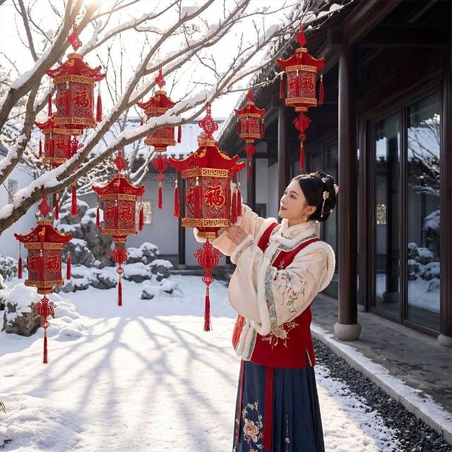 精選聯盟2026新款新年福字大門口燈籠客廳毛絨掛飾農村佈置過年氛圍裝飾品