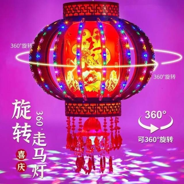 精選聯盟新年燈籠led七彩旋轉陽臺喬遷裝飾大門仿古走馬燈2026年燈籠新款