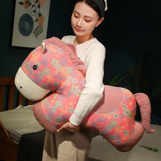 精選聯盟2026馬年吉祥物全棉三層紗馬抱枕居家客廳靠墊新年公仔新中式禮物
