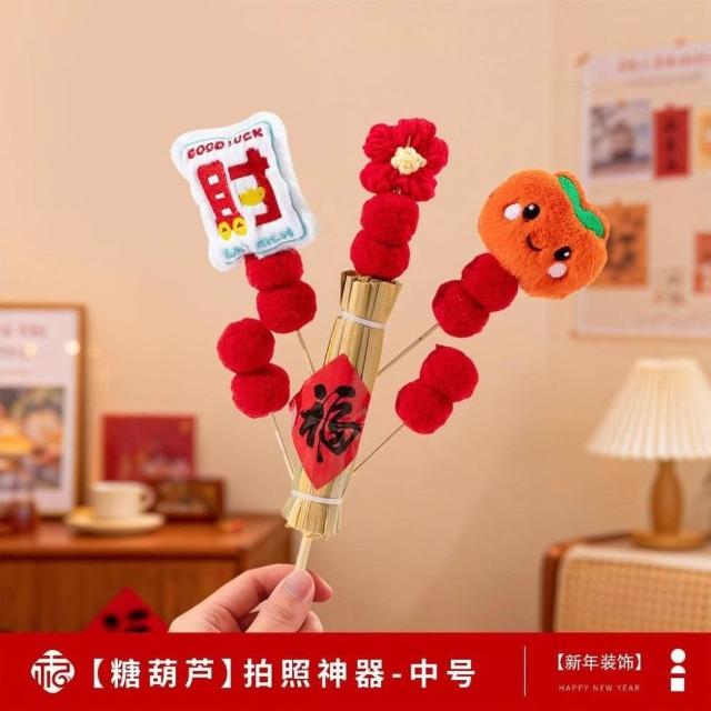 精選聯盟新年2026馬年手持毛絨立體糖葫蘆送女生拍照道具裝飾品春節