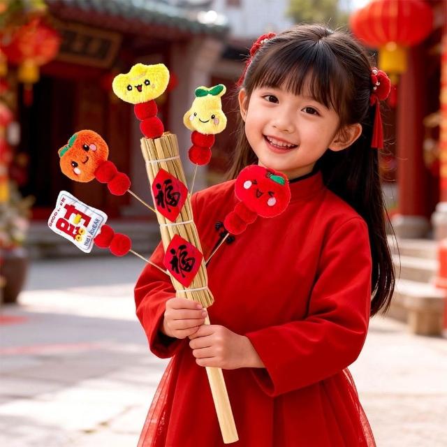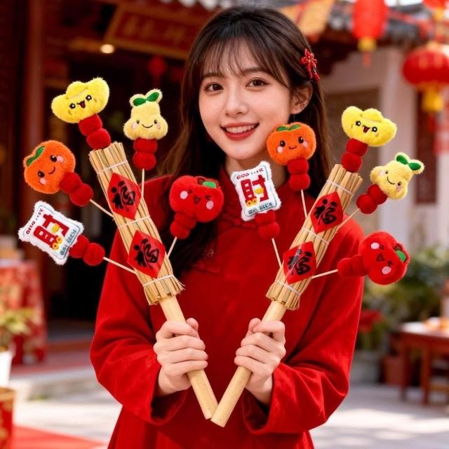 精選聯盟新年2026馬年手持毛絨立體糖葫蘆送女生拍照道具裝飾品春節