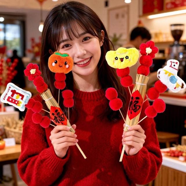 精選聯盟新年2026馬年手持毛絨立體糖葫蘆送女生拍照道具裝飾品春節