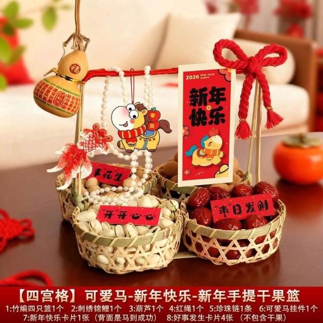 精選聯盟2026新年手提籃乾果盤創意擺件春節馬年用品家用年貨喜慶氛圍佈置