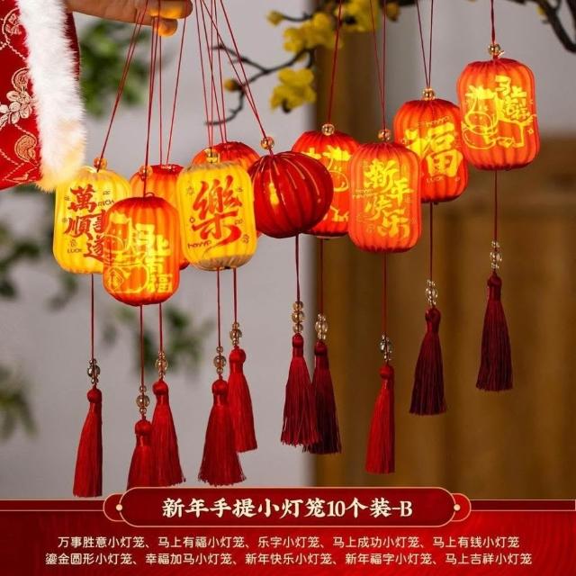 精選聯盟新年小燈籠裝飾2026新馬年花燈掛件春節過年氛圍盆景紅燈籠掛飾