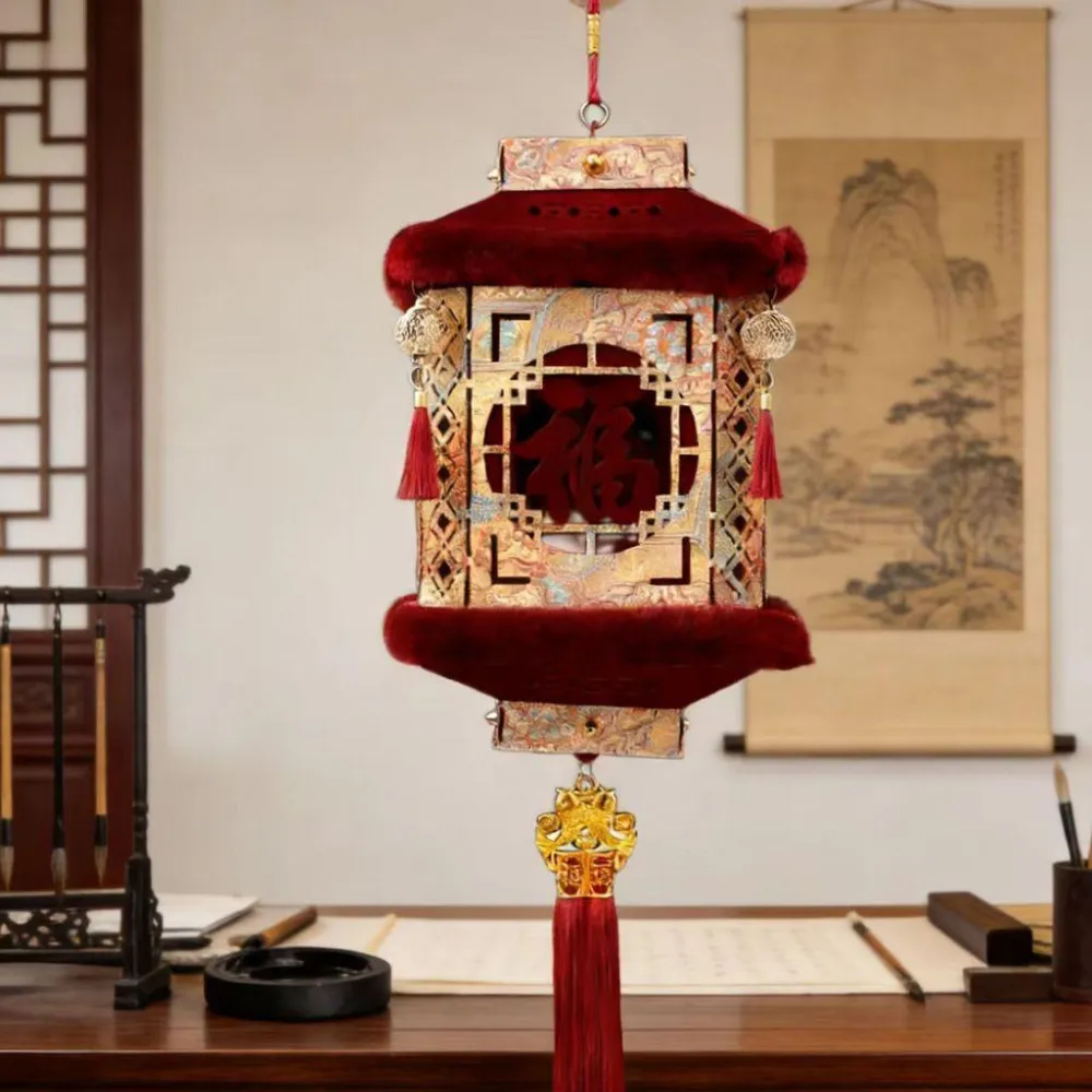 精選聯盟2026新款宋錦福字植絨布宮燈字體DIY手工紅燈籠過年裝飾掛飾