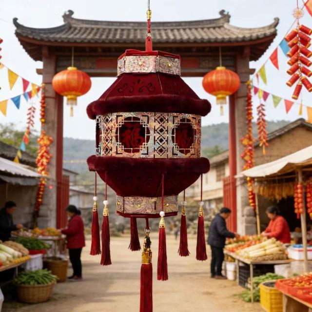 精選聯盟2026新款宋錦福字植絨布宮燈字體DIY手工紅燈籠過年裝飾掛飾
