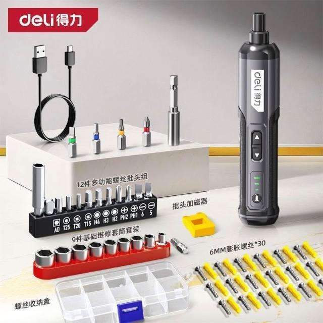 精選聯盟得力電動螺絲刀小型家用迷你充電式螺絲電動鑽電批套裝鋰電動起子