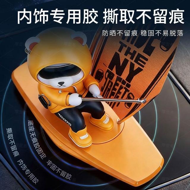 精選聯盟新款車載衝浪小熊創意擺件汽車內用中控臺個性搖擺香薰持久淡香氛