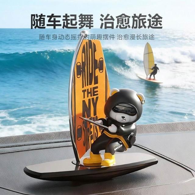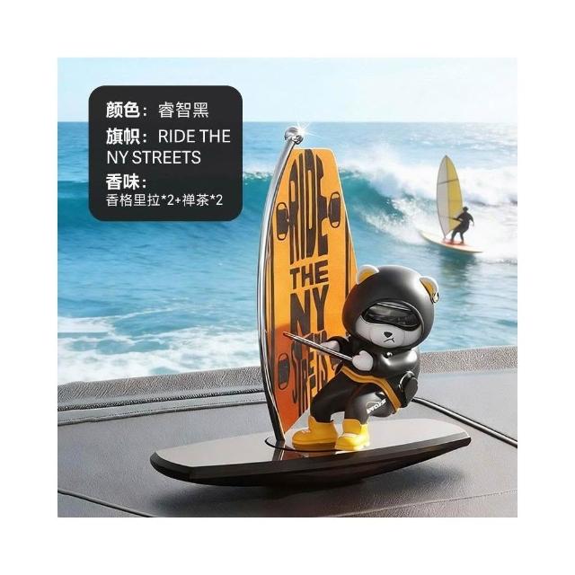 精選聯盟新款車載衝浪小熊創意擺件汽車內用中控臺個性搖擺香薰持久淡香氛