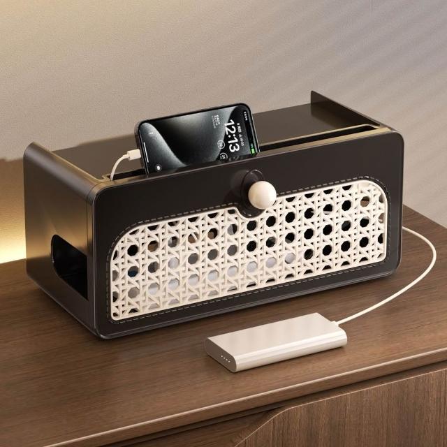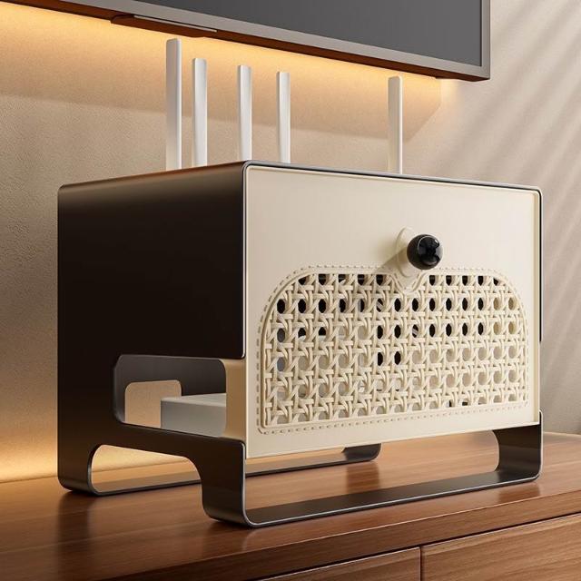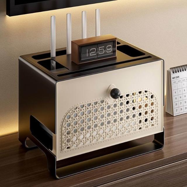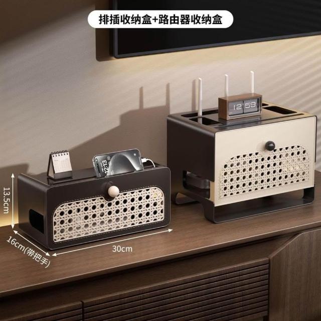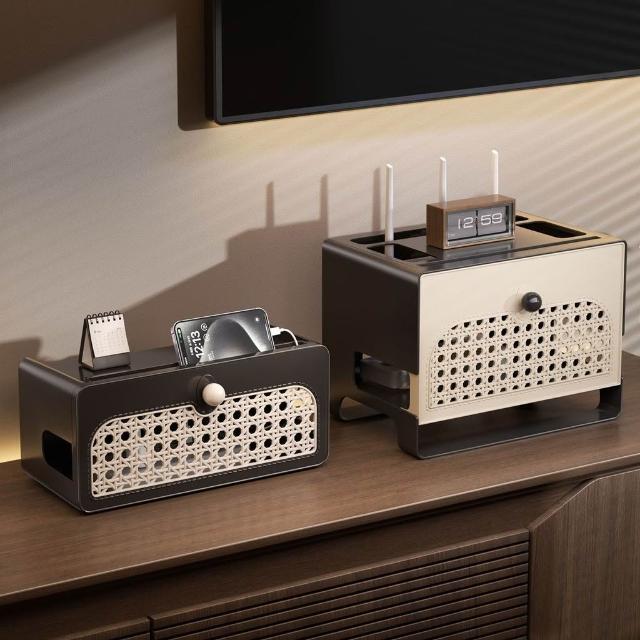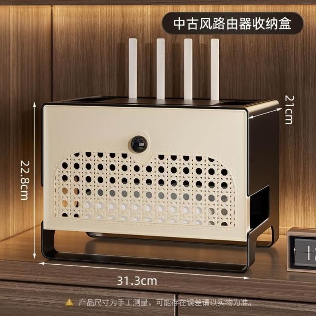 精選聯盟中古風路由器收納盒wifi光貓電視機頂盒置物架排插充電線收納架子