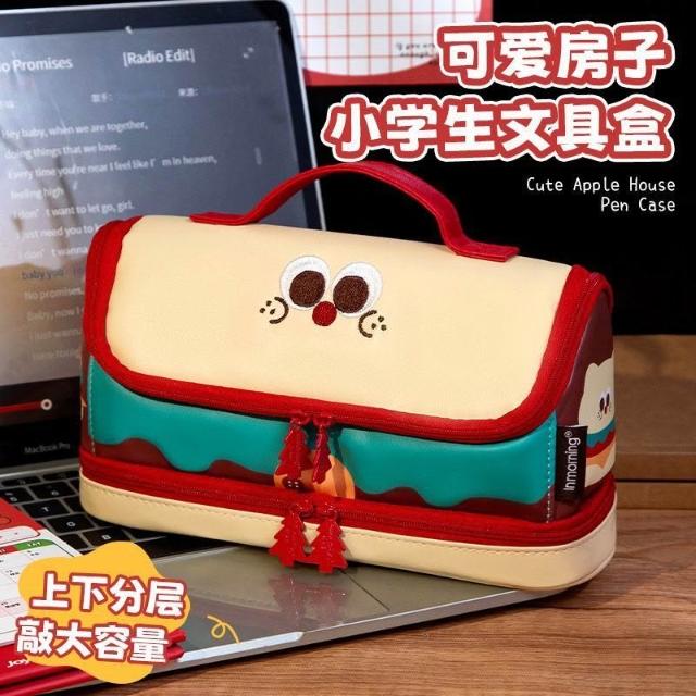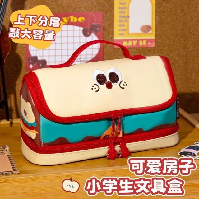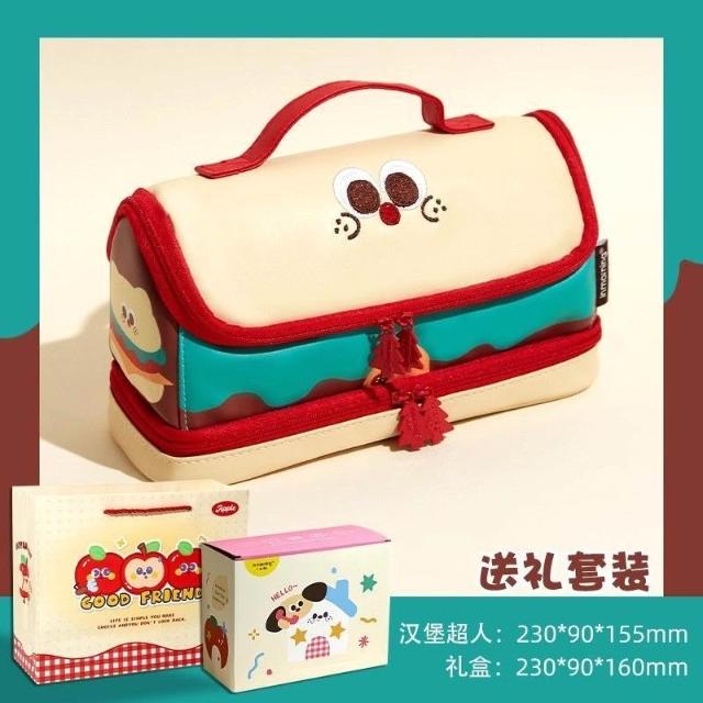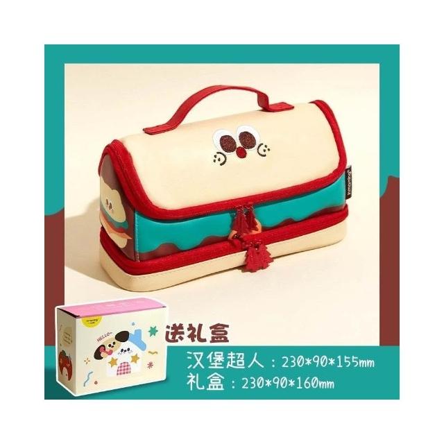 精選聯盟卡通漢堡筆袋拼接手提大容量文具筆袋高顏值ins可愛文具袋多巴胺