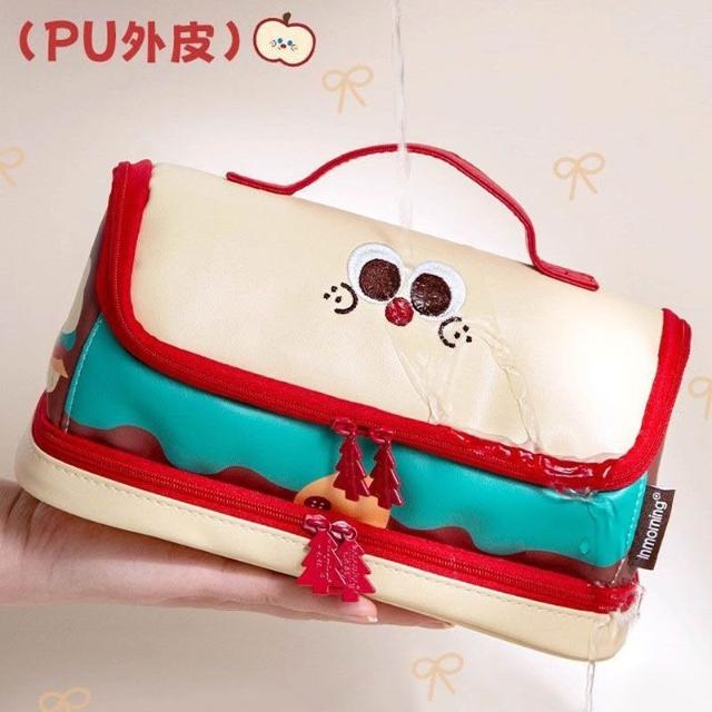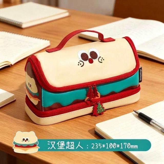 精選聯盟卡通漢堡筆袋拼接手提大容量文具筆袋高顏值ins可愛文具袋多巴胺