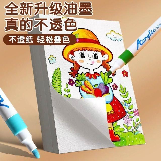 精選聯盟正版丙烯馬克筆兒童專用業不透紙可疊色學生美術幼兒園無毒水洗