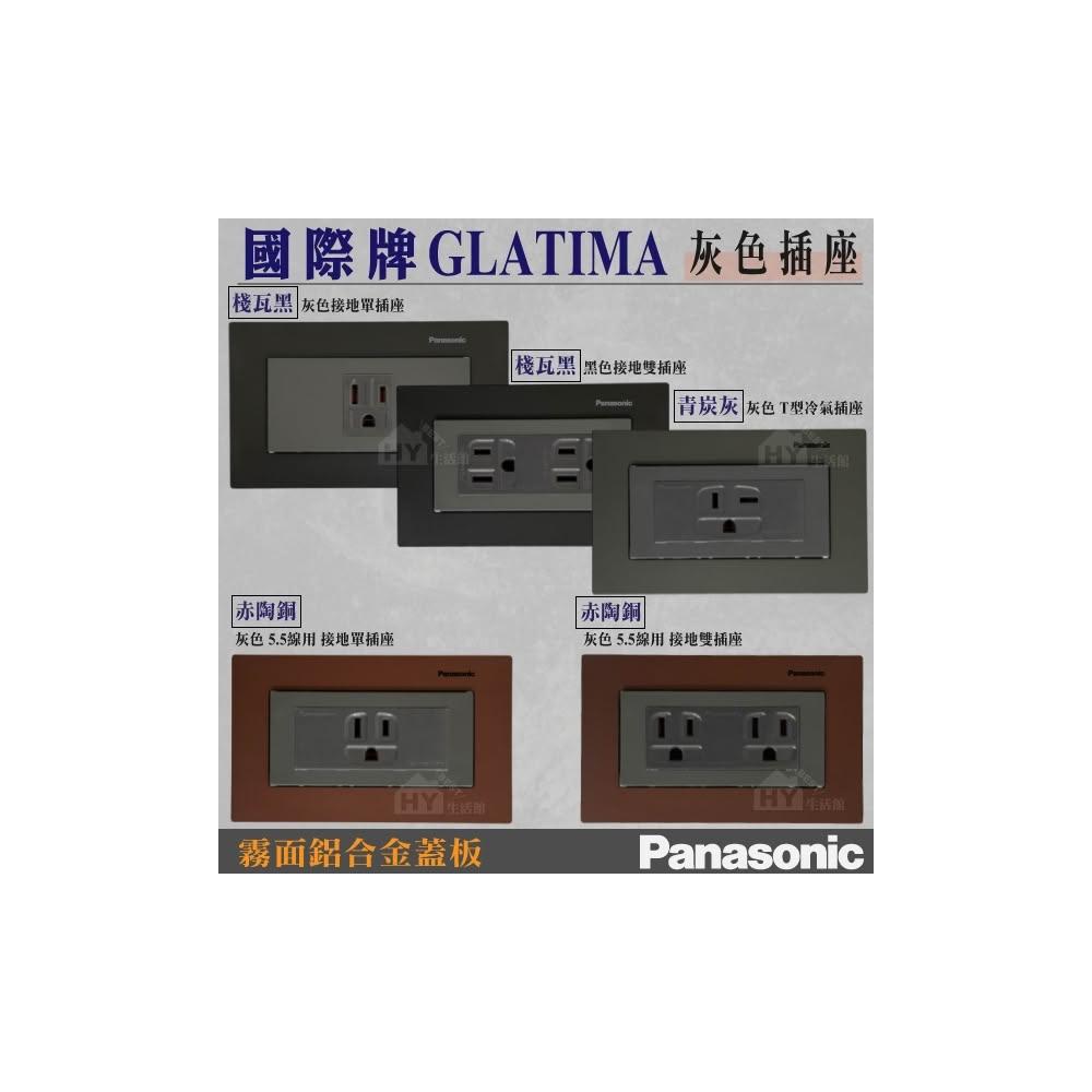 Panasonic 國際牌國際牌GLATIMA 灰色插座 接地雙插座 T型插座 接地單插座 + 霧面鋁合金蓋板 青炭灰 棧瓦黑 赤陶銅 直式 橫式
