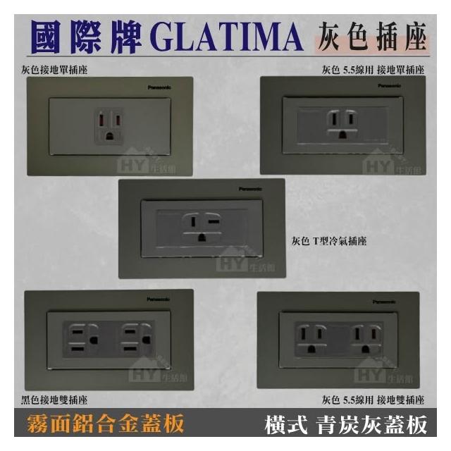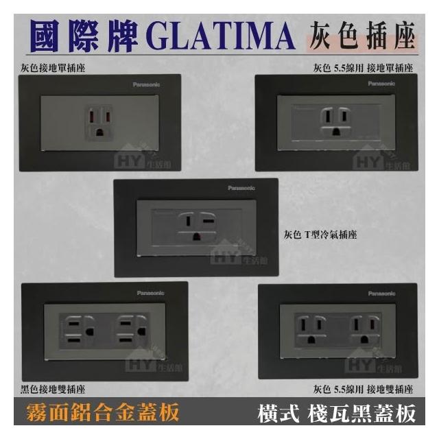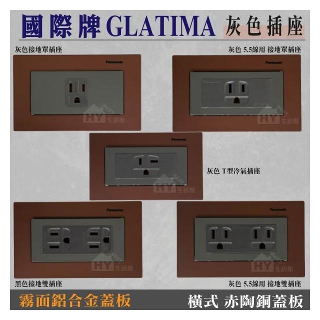 Panasonic 國際牌國際牌GLATIMA 灰色插座 接地雙插座 T型插座 接地單插座 + 霧面鋁合金蓋板 青炭灰 棧瓦黑 赤陶銅 直式 橫式