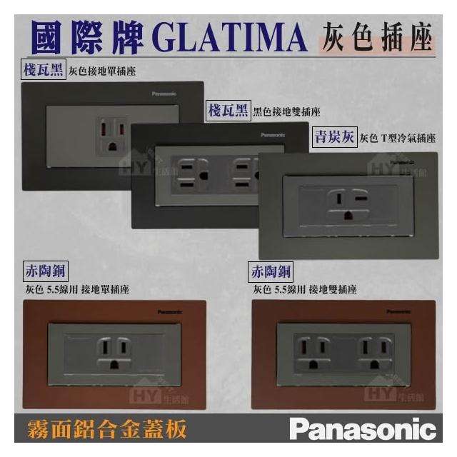 Panasonic 國際牌國際牌GLATIMA 灰色插座 接地雙插座 T型插座 接地單插座 + 霧面鋁合金蓋板 青炭灰 棧瓦黑 赤陶銅 直式 橫式