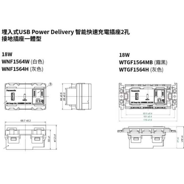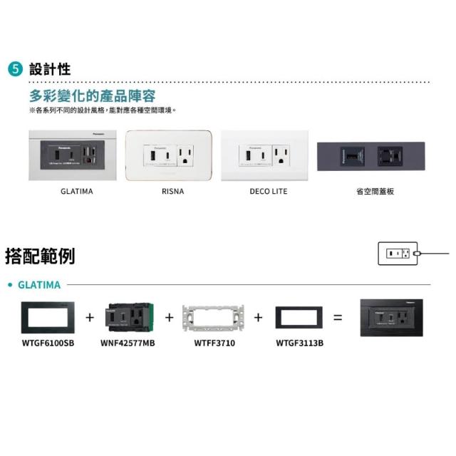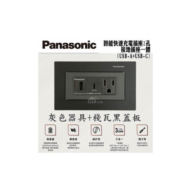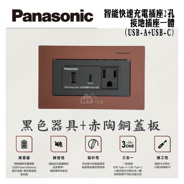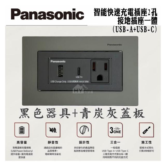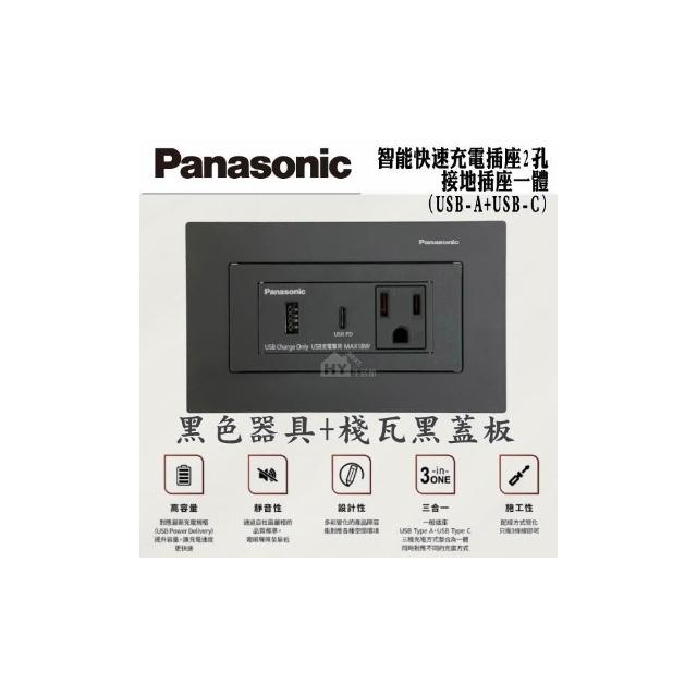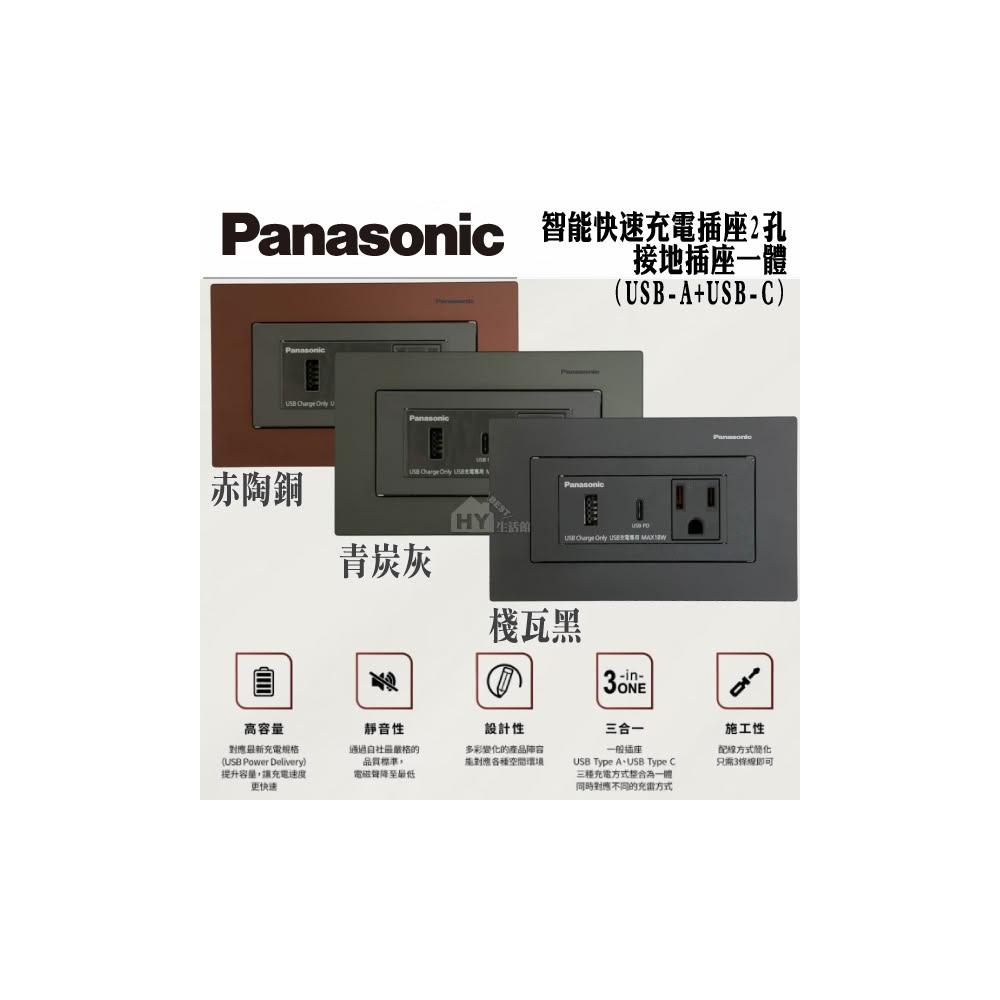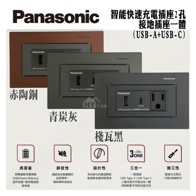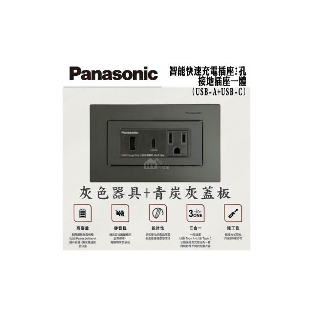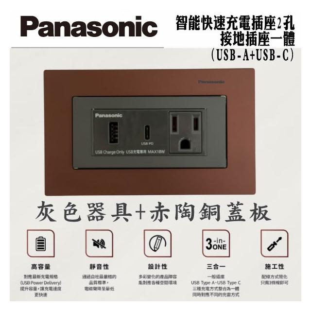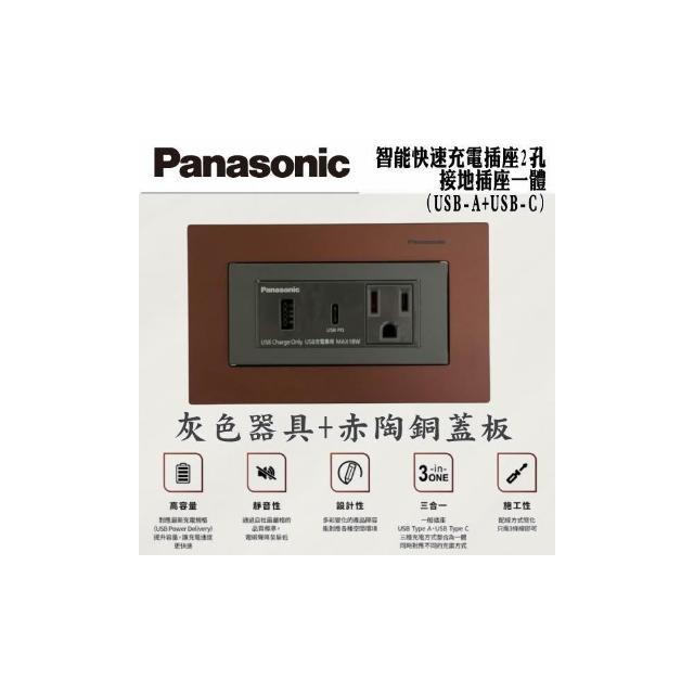 Panasonic 國際牌國際牌 充電插座 一體型 18W 72W快速充電 + 接地插座 霧黑 灰 GLATIMA 霧面鋁合金蓋板 赤陶銅 青炭灰