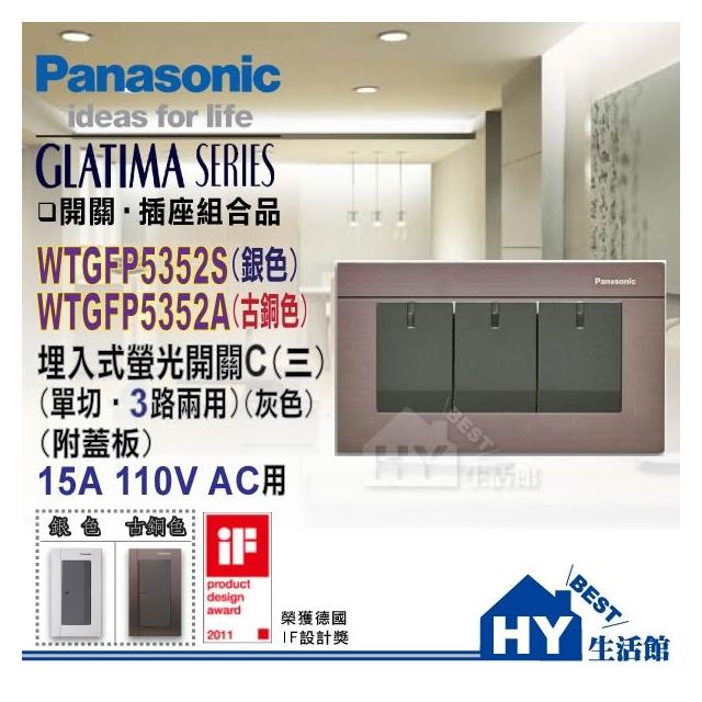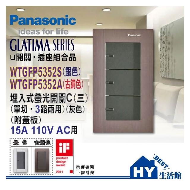 Panasonic 國際牌panasonic 國際牌 GLATIMA 開關插座 三開關 附 鋁合金 開關面板 古銅色 WTGFP5352A