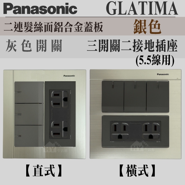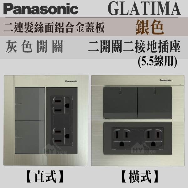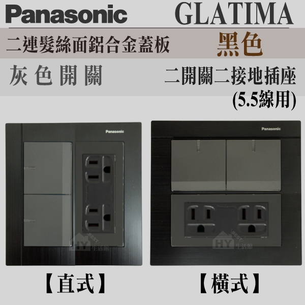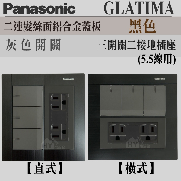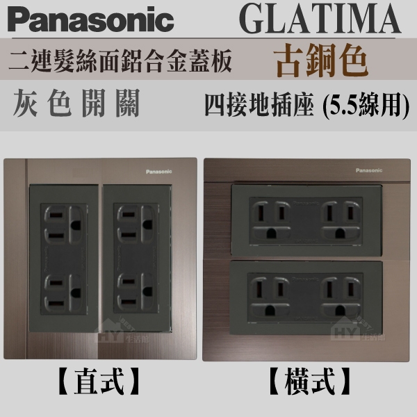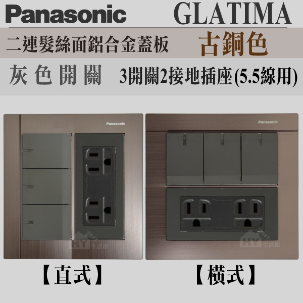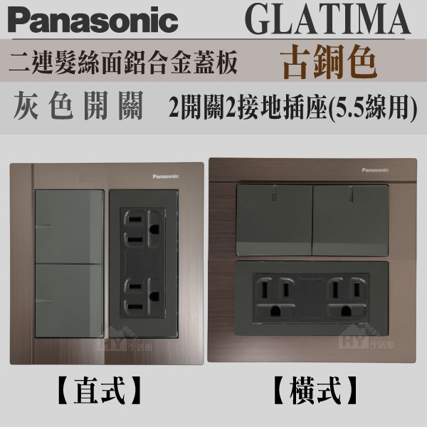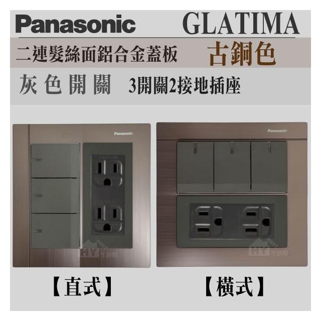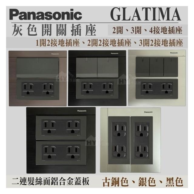 Panasonic 國際牌國際牌 GLATIMA 二連 灰色開關 1開2插 二開二插 3開雙插 四接地插座 5.5專用插 鋁合金面板 古銅 銀 黑