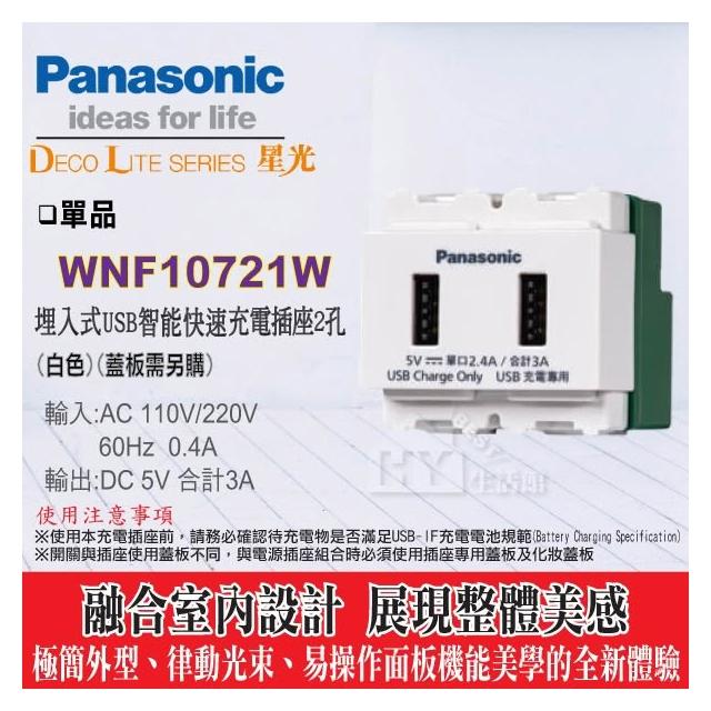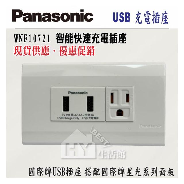 Panasonic 國際牌國際牌 星光系列 USB雙插座 WNF10721W USB 充電插座2孔 + 星光蓋板 + 單切開關 三路開關 接地插座