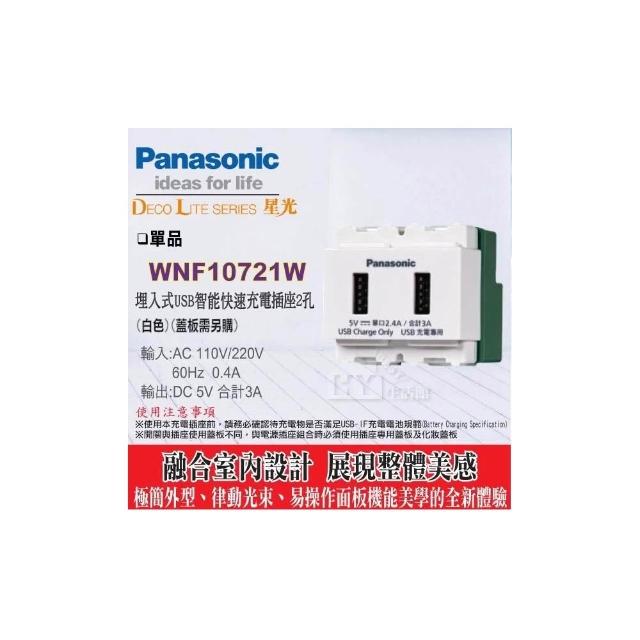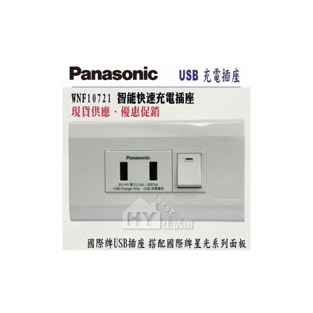 Panasonic 國際牌國際牌 星光系列 USB雙插座 WNF10721W USB 充電插座2孔 + 星光蓋板 + 單切開關 三路開關 接地插座