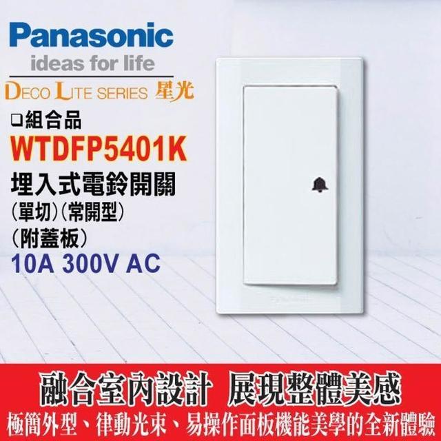 Panasonic 國際牌國際牌 星光系列 國際 星光 大面板 開關插座 WTDFP5401 電鈴押扣附蓋板 電鈴開關 單切常壓式 電鈴壓扣 含稅
