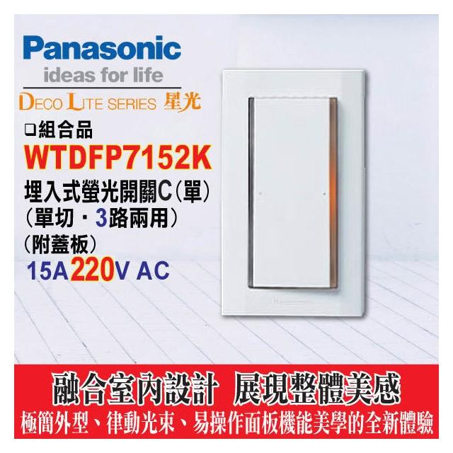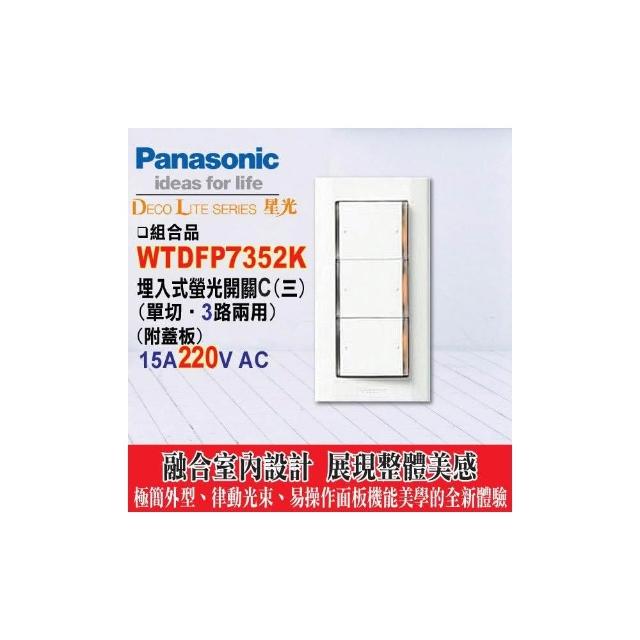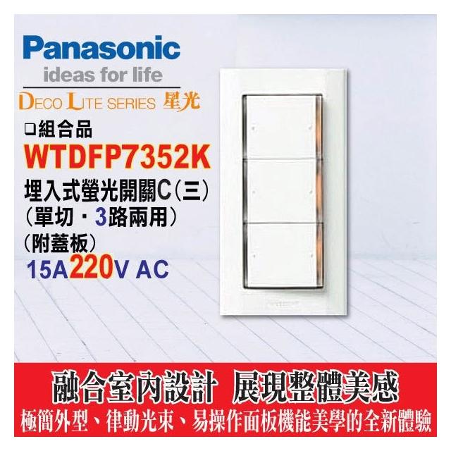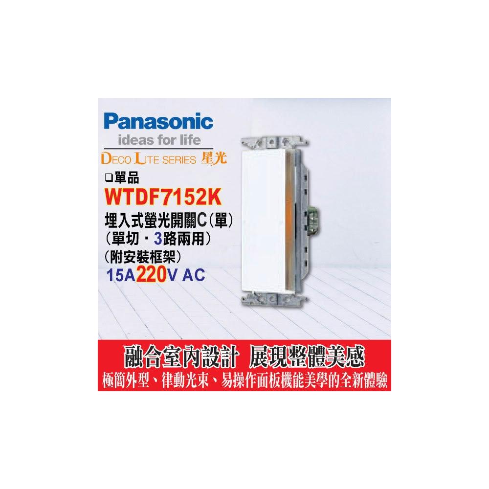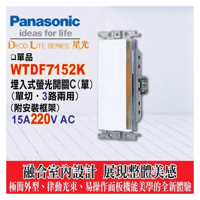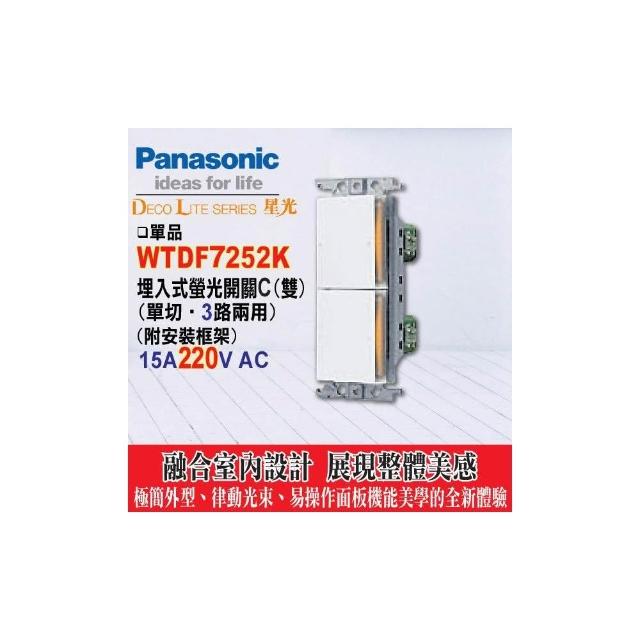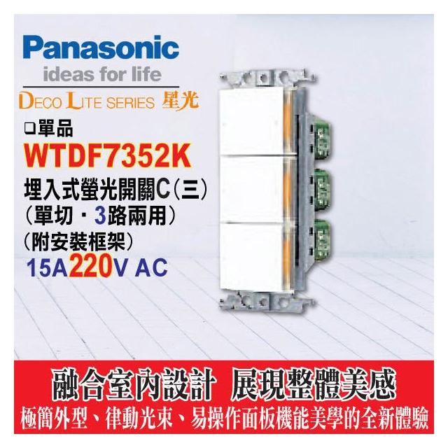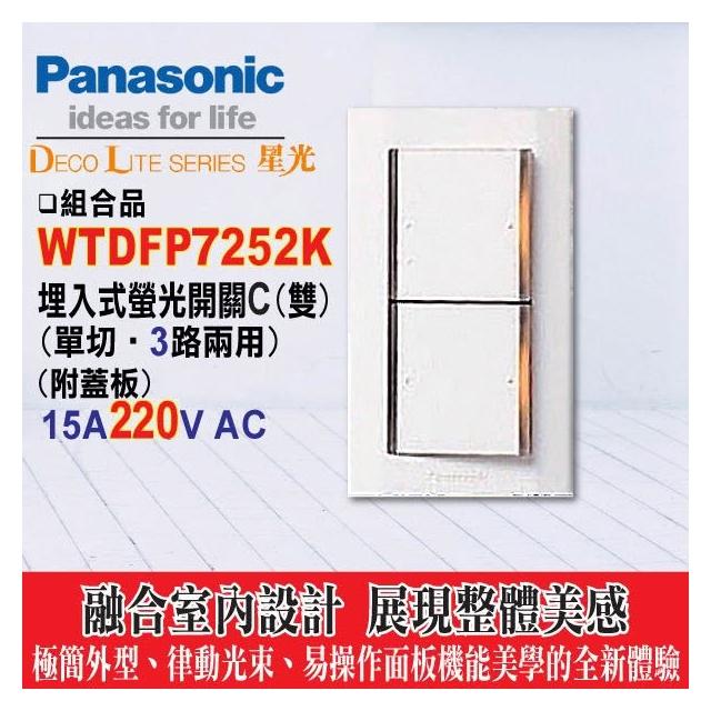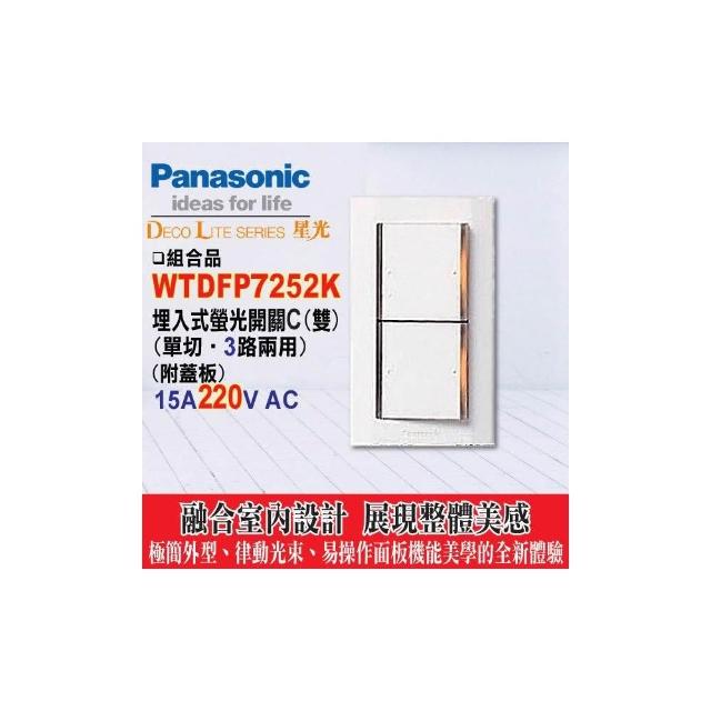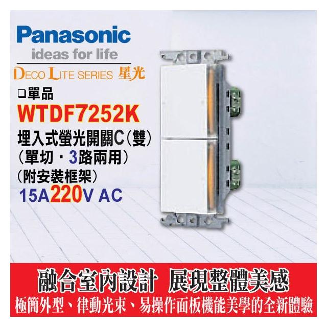Panasonic 國際牌國際牌 星光系列 大面板 220V 專用 螢光開關 WTDF7152K WTDF7252K WTDFP7352K 附蓋板
