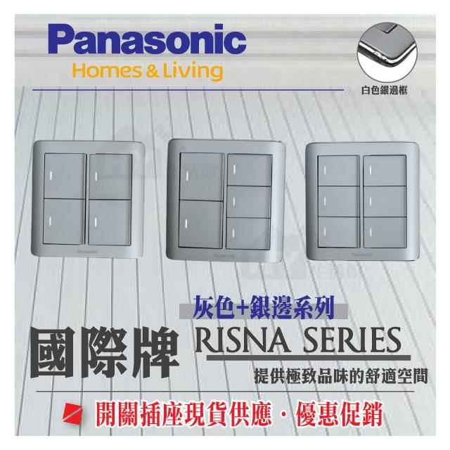Panasonic 國際牌Panasonic 國際牌 Risna 開關插座 2連開關 四切 五切 六切 二連式螢光開關 三路開關 灰色蓋板 銅邊