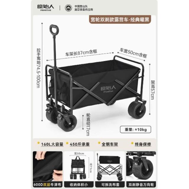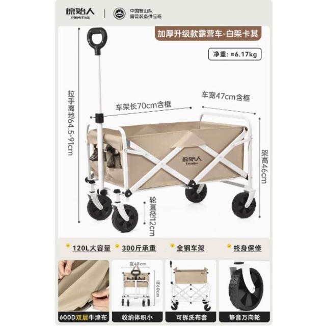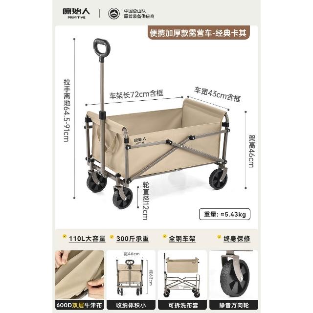 原始人戶外露營推車可折疊四輪小推車野餐車營地拖車桌板拉桿拉車