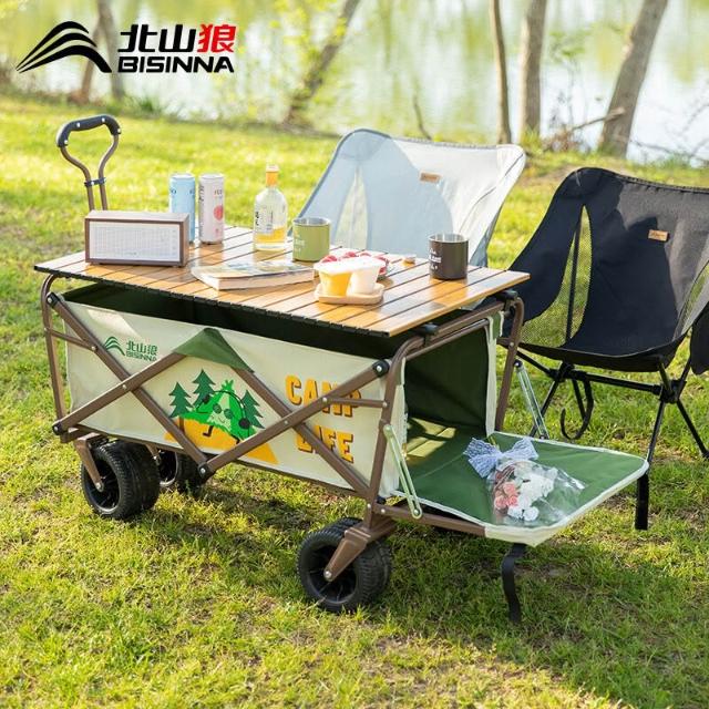 北山狼露營推車營地野餐野營可加折疊桌板戶外便攜擺攤手拉小拖車