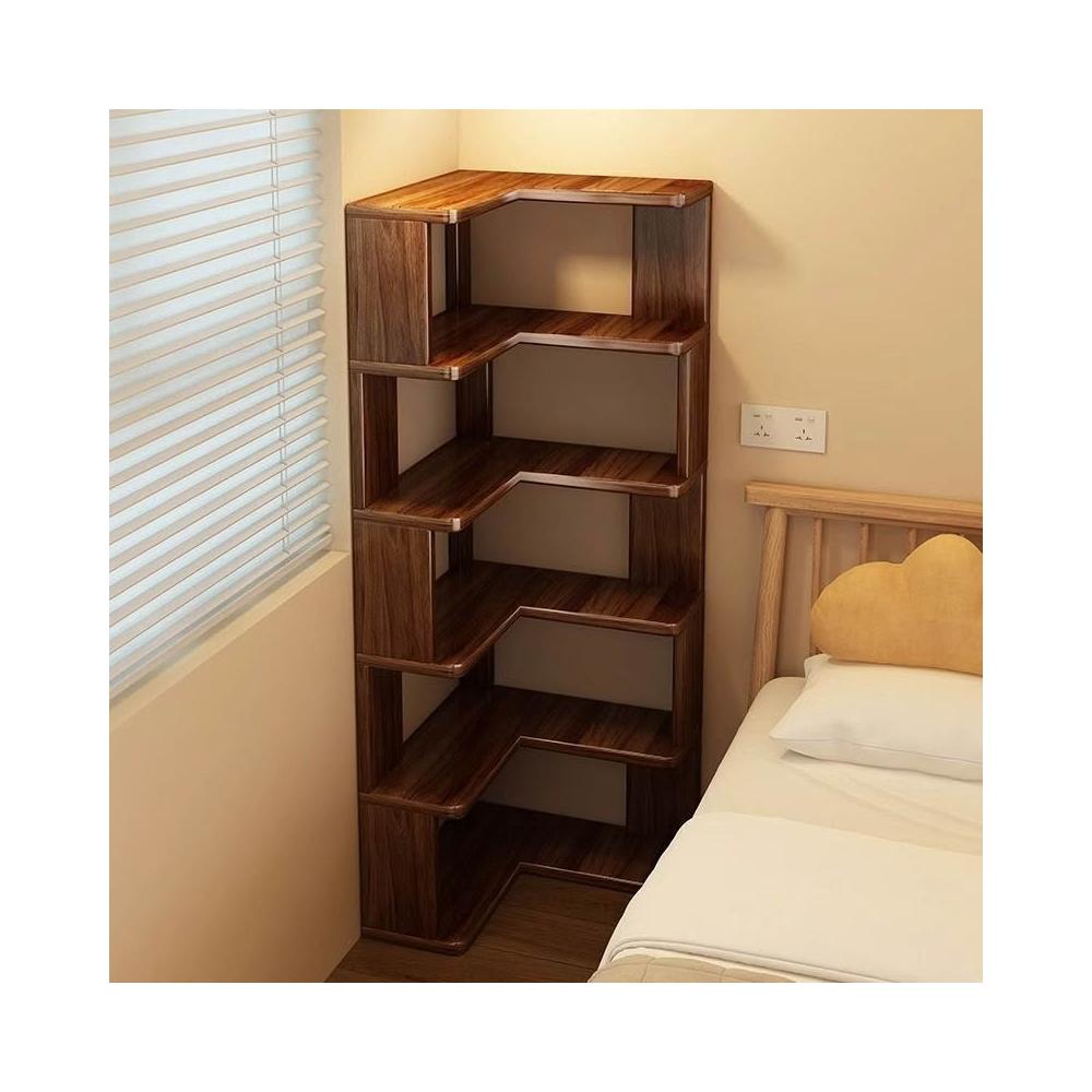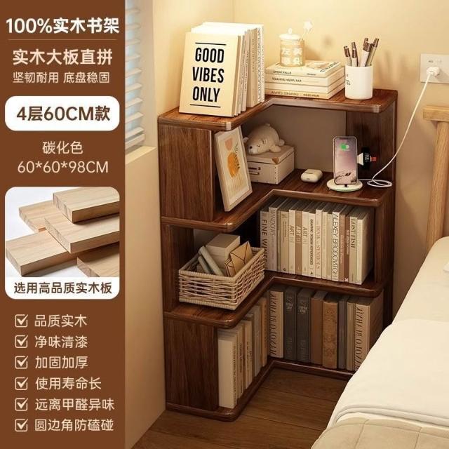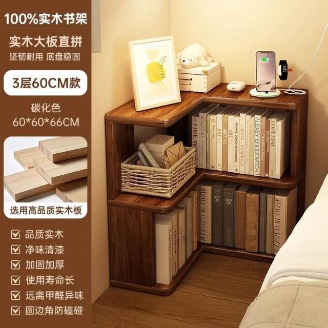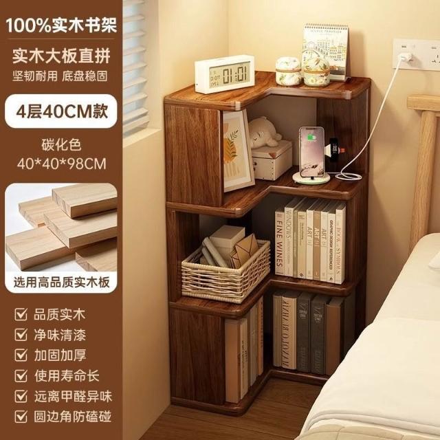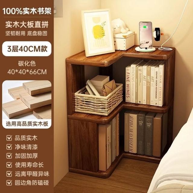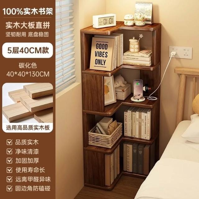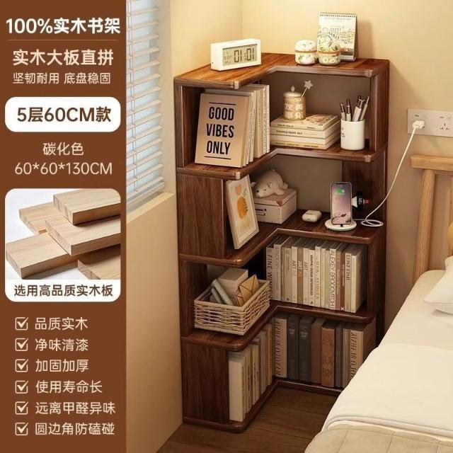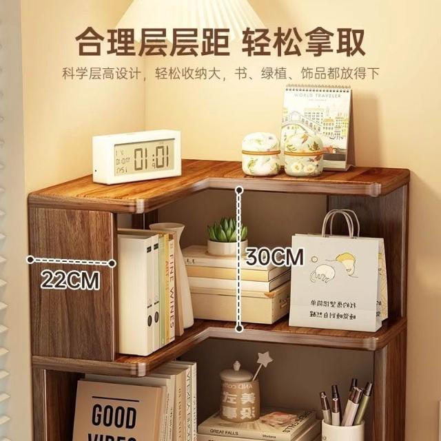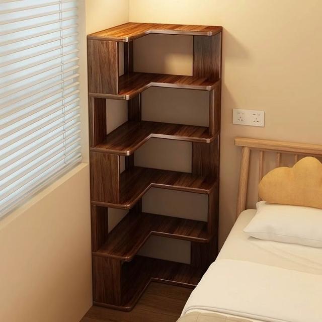 實木落地置物架客廳角櫃墻角收納架簡易拐角儲物書櫃轉角書架