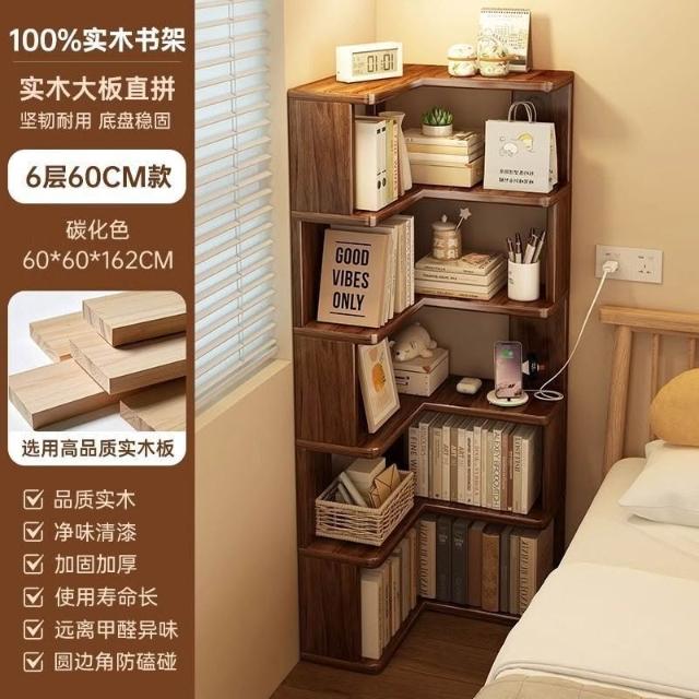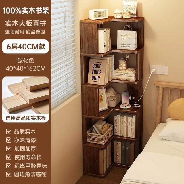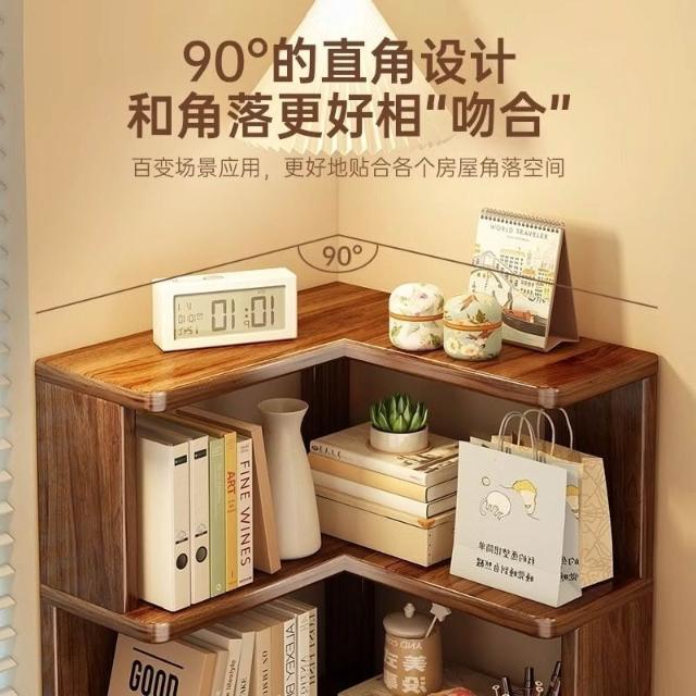 實木落地置物架客廳角櫃墻角收納架簡易拐角儲物書櫃轉角書架