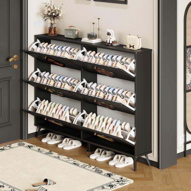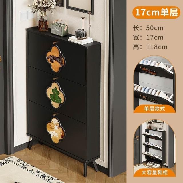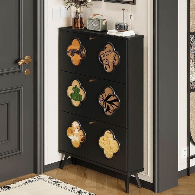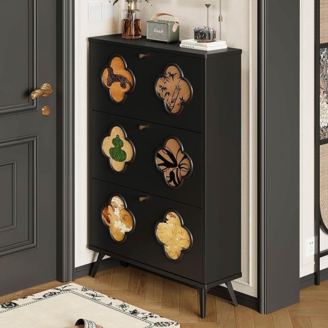 法式黑色中古風超薄翻鬥鞋櫃家用門口進門靠墻大容量入戶玄關鞋架