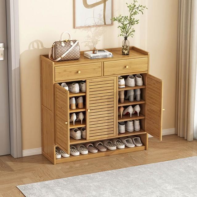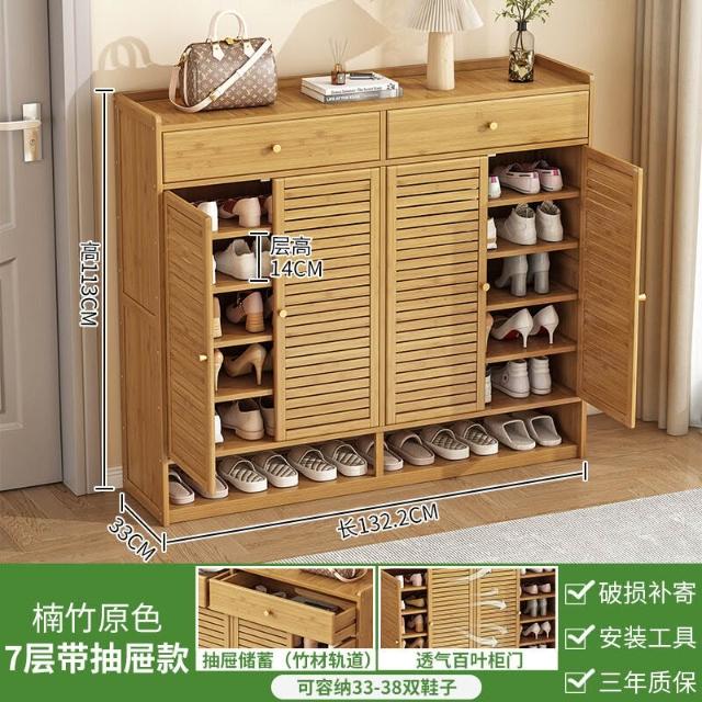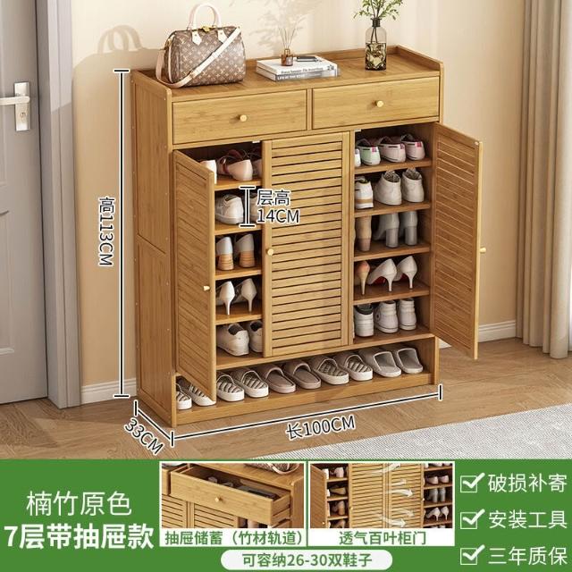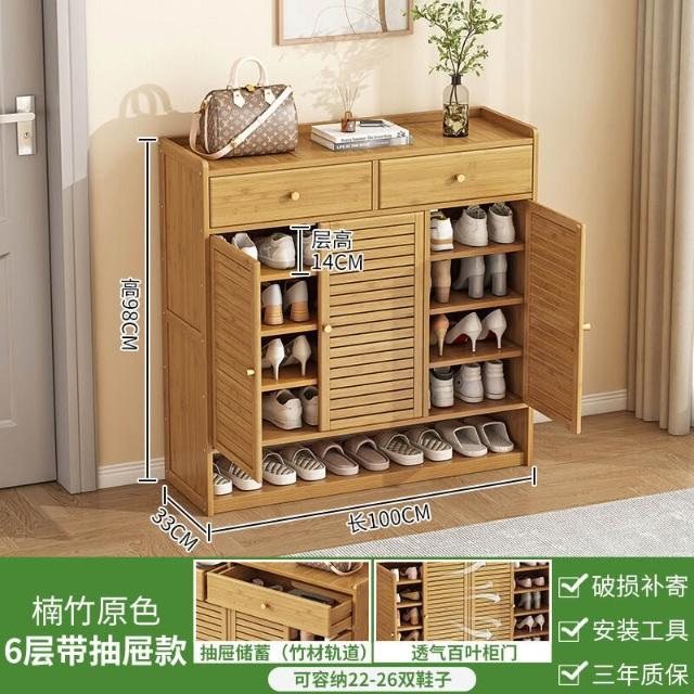 家用鞋櫃門口大容量帶抽屜入戶透氣玄關櫃宿舍多層防塵楠竹鞋架