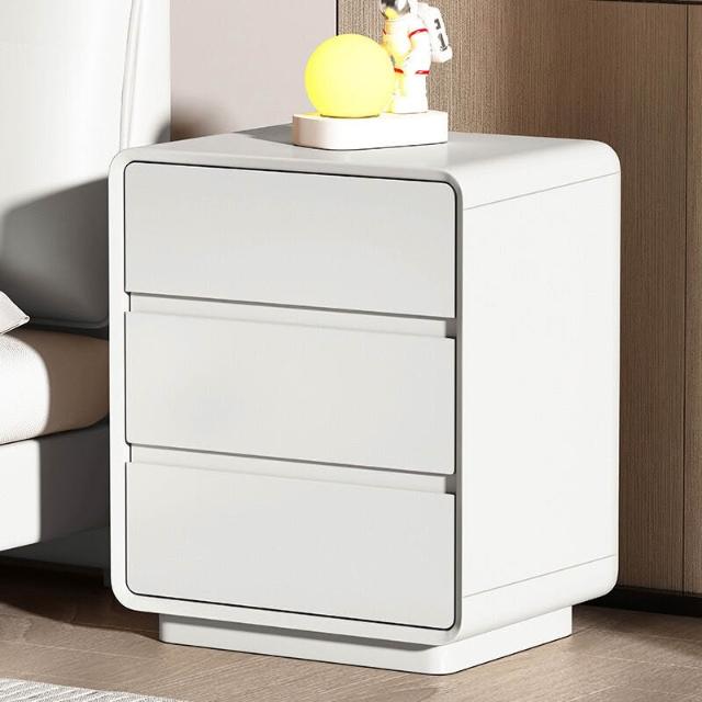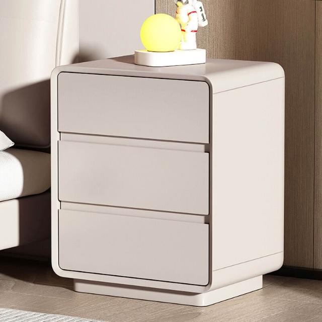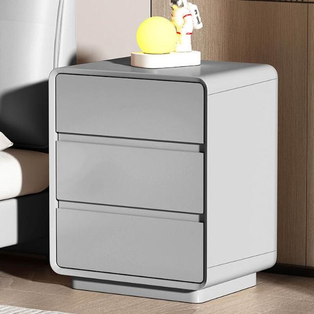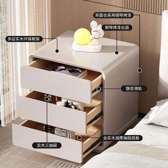 意式極簡實木烤漆三層床頭櫃輕奢高級感家用臥室免安裝床頭收納櫃