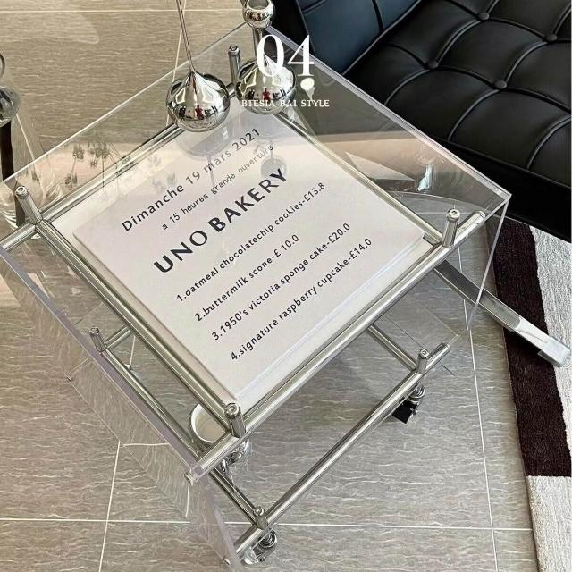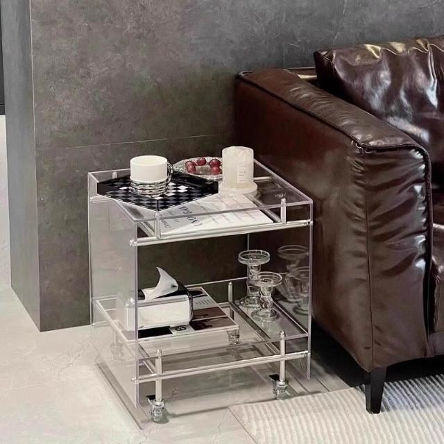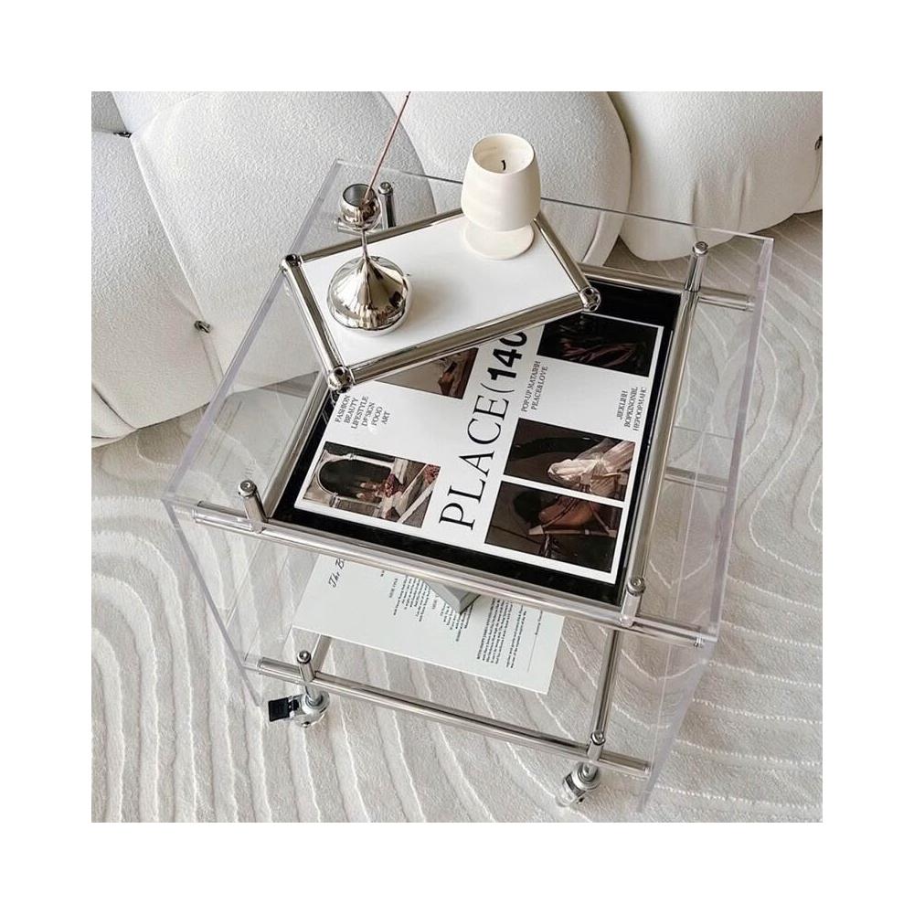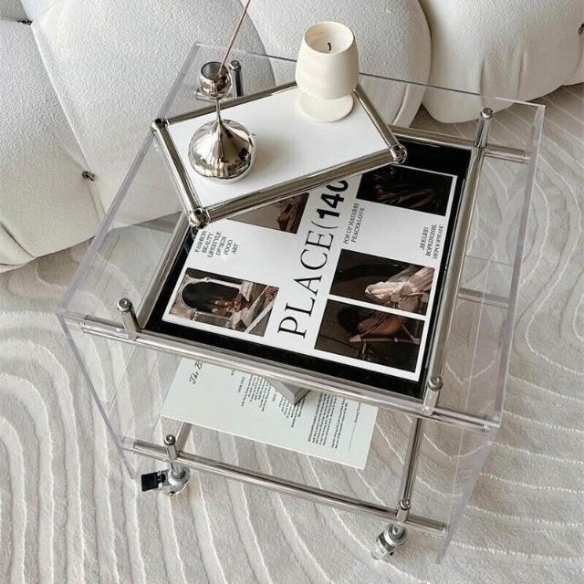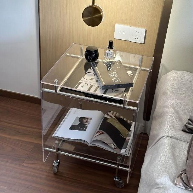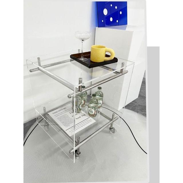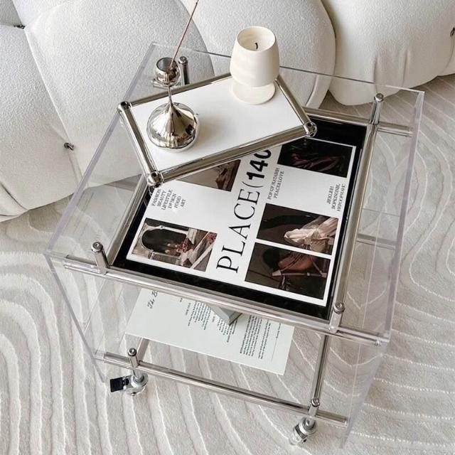 亞克力移動小推車邊幾置物架透明角幾床頭櫃ins網紅不銹鋼收納架