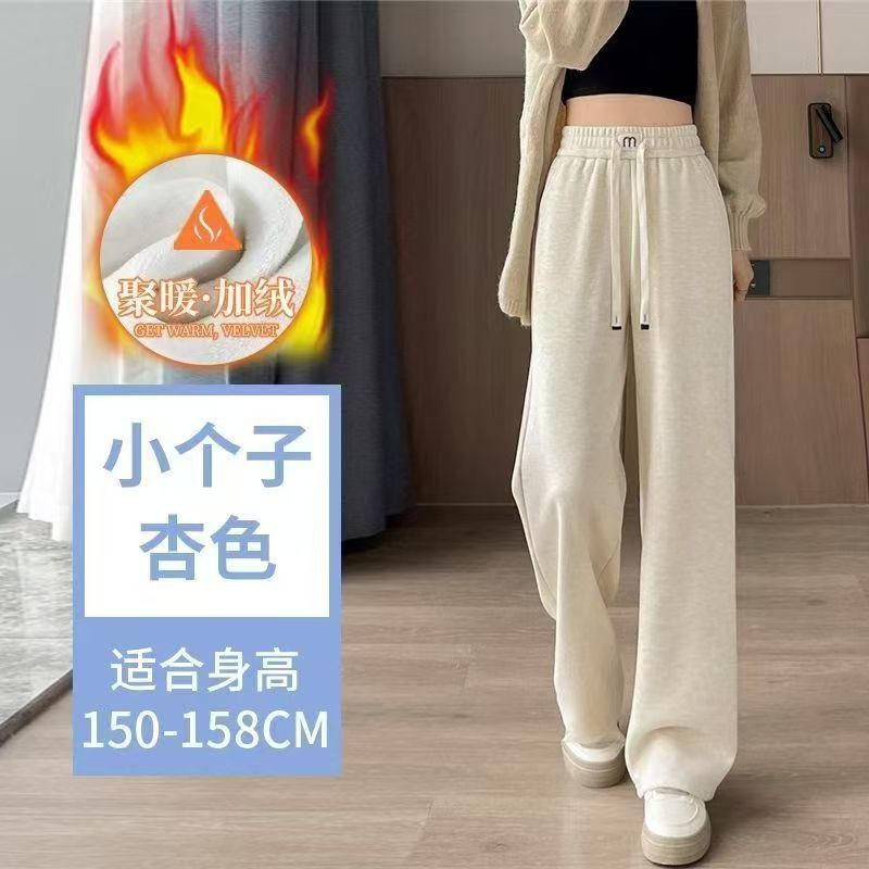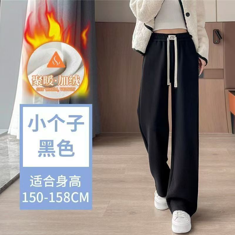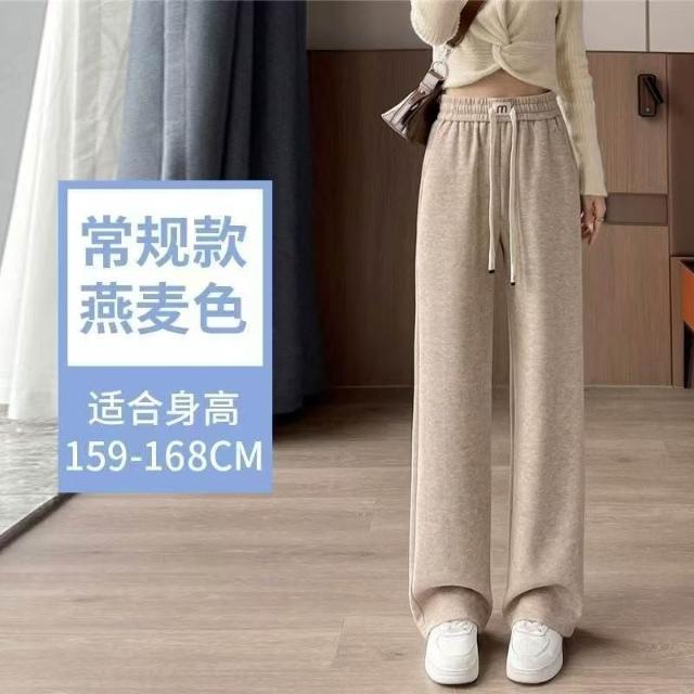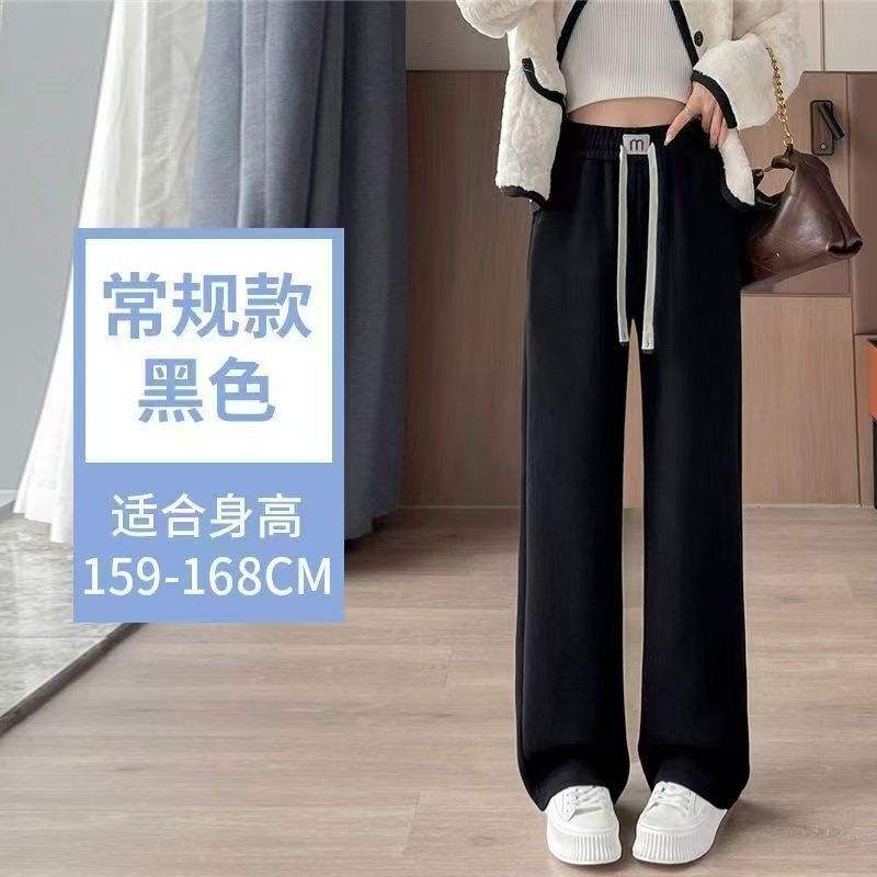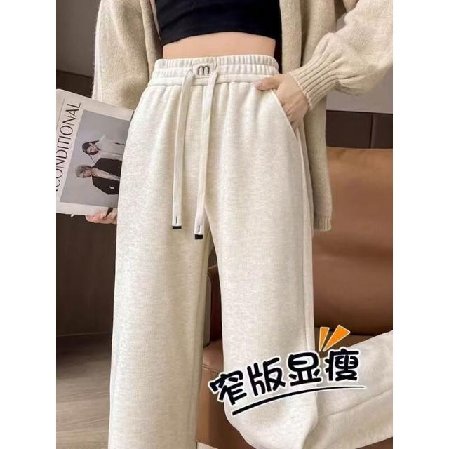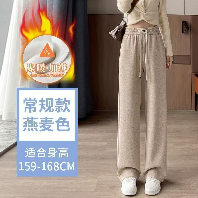 仿羊絨闊腿褲女秋冬新款高腰褲子加絨加厚垂感休閑寬松直筒褲