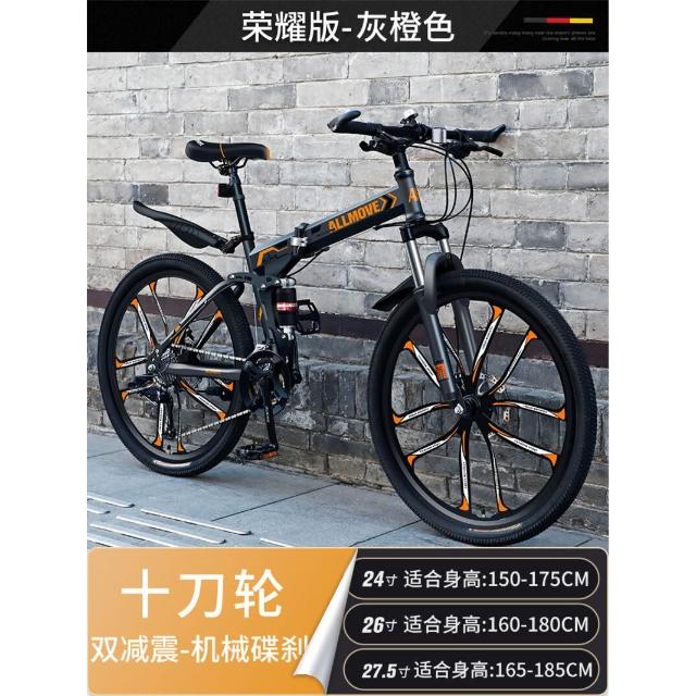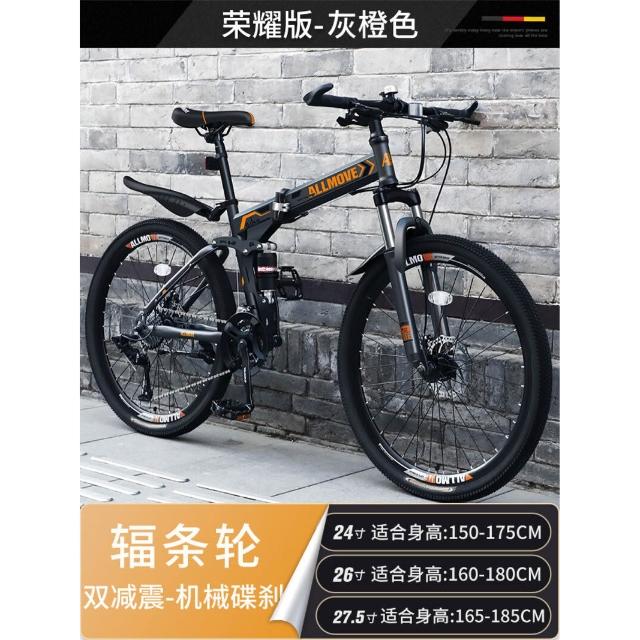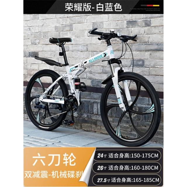 折疊山地自行車男款變速越野雙減震單車24寸青少年女男士學生成人