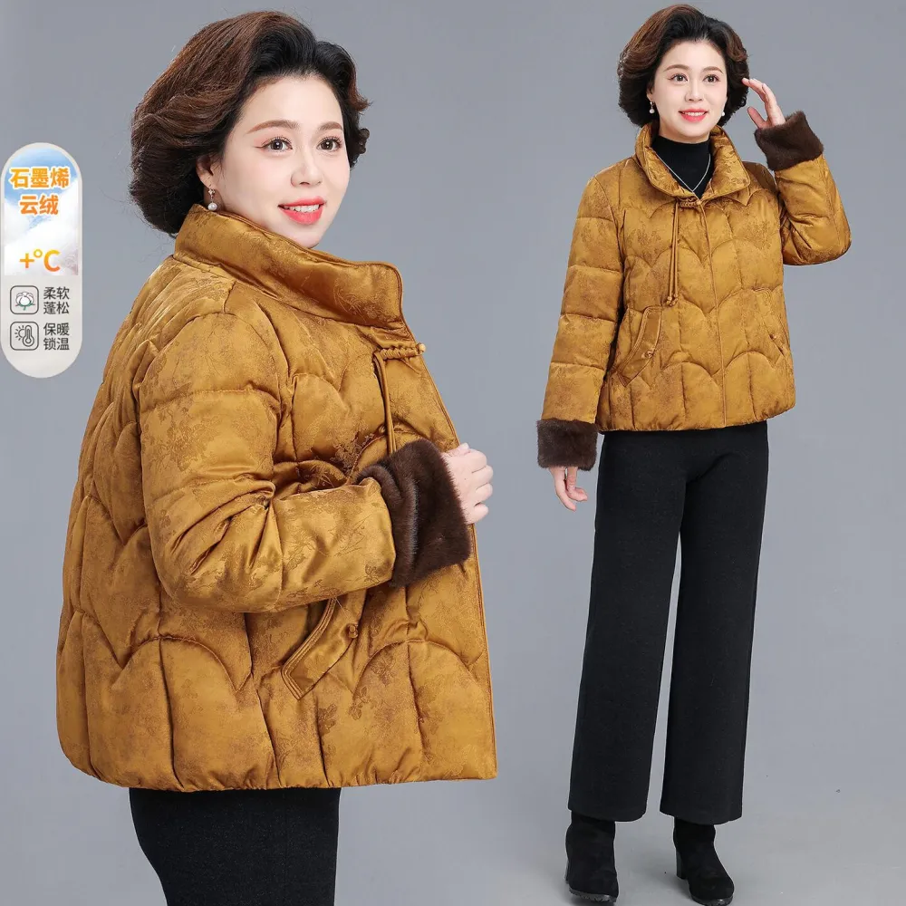 壹和軒精選 新中式媽媽冬裝保暖棉服國風唐裝棉襖洋氣中老年女裝秋冬棉衣外套