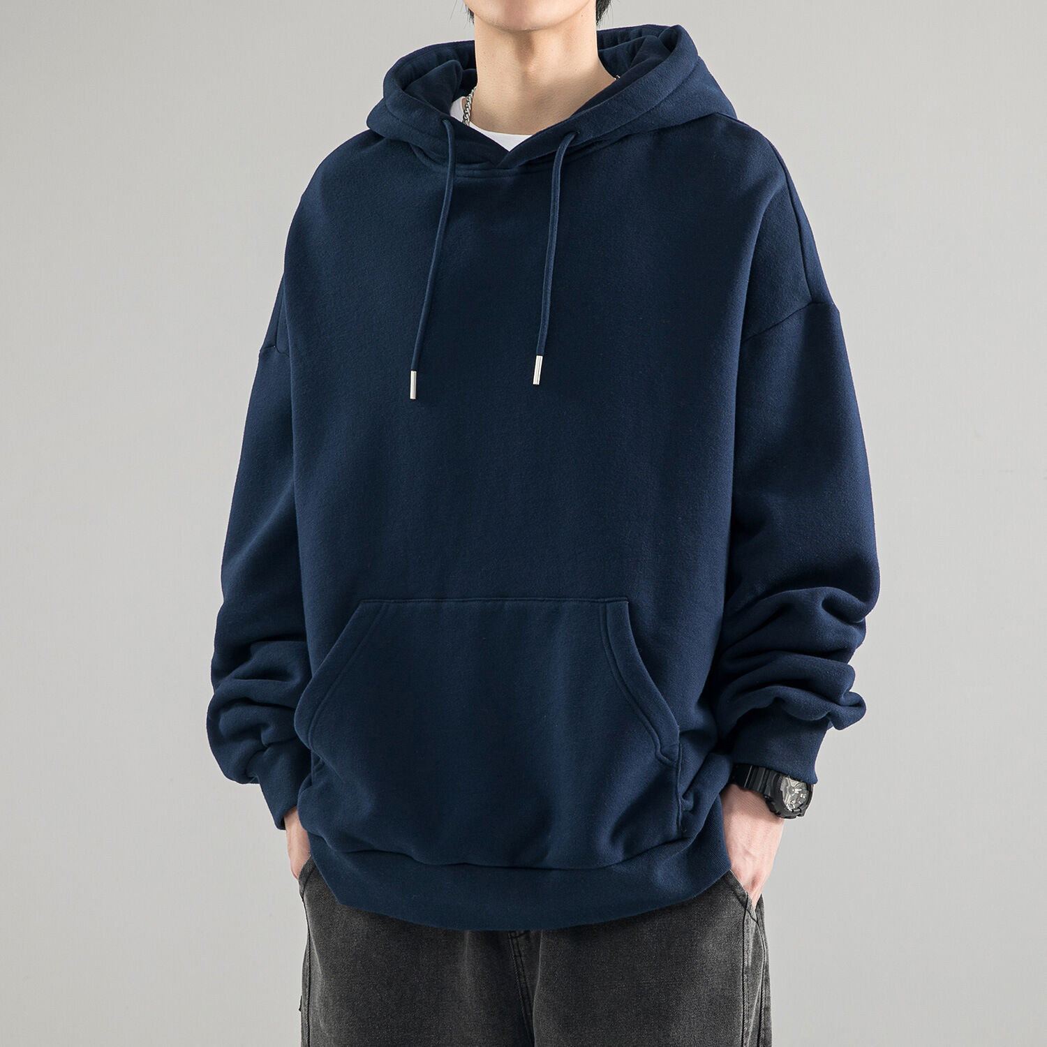 重磅加厚400g加絨500g華棉復合秋冬季連帽衛衣男寬松休閑套頭外套