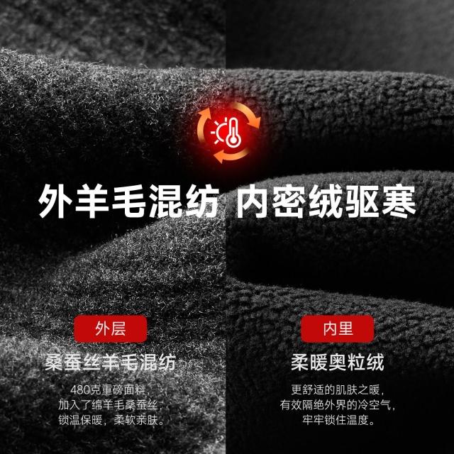 加絨加厚480克重磅羊毛灰色翻領衛衣男2025秋冬季新款POLO領上衣